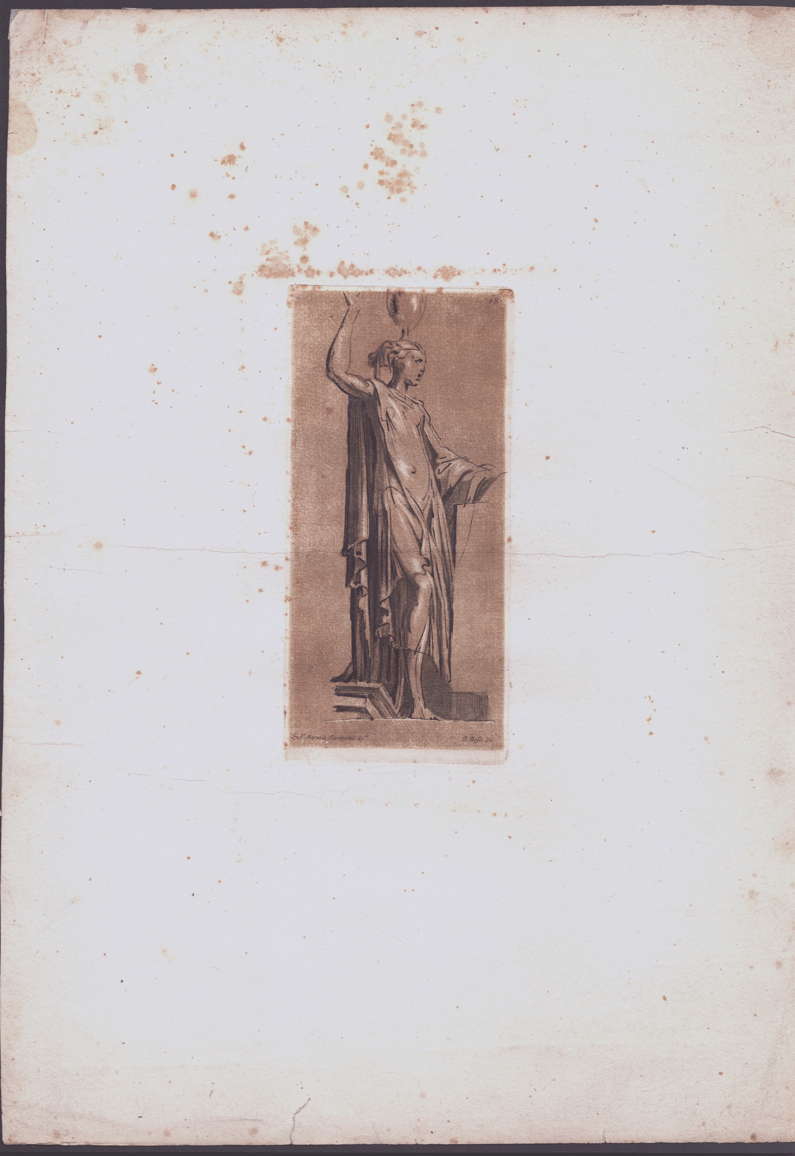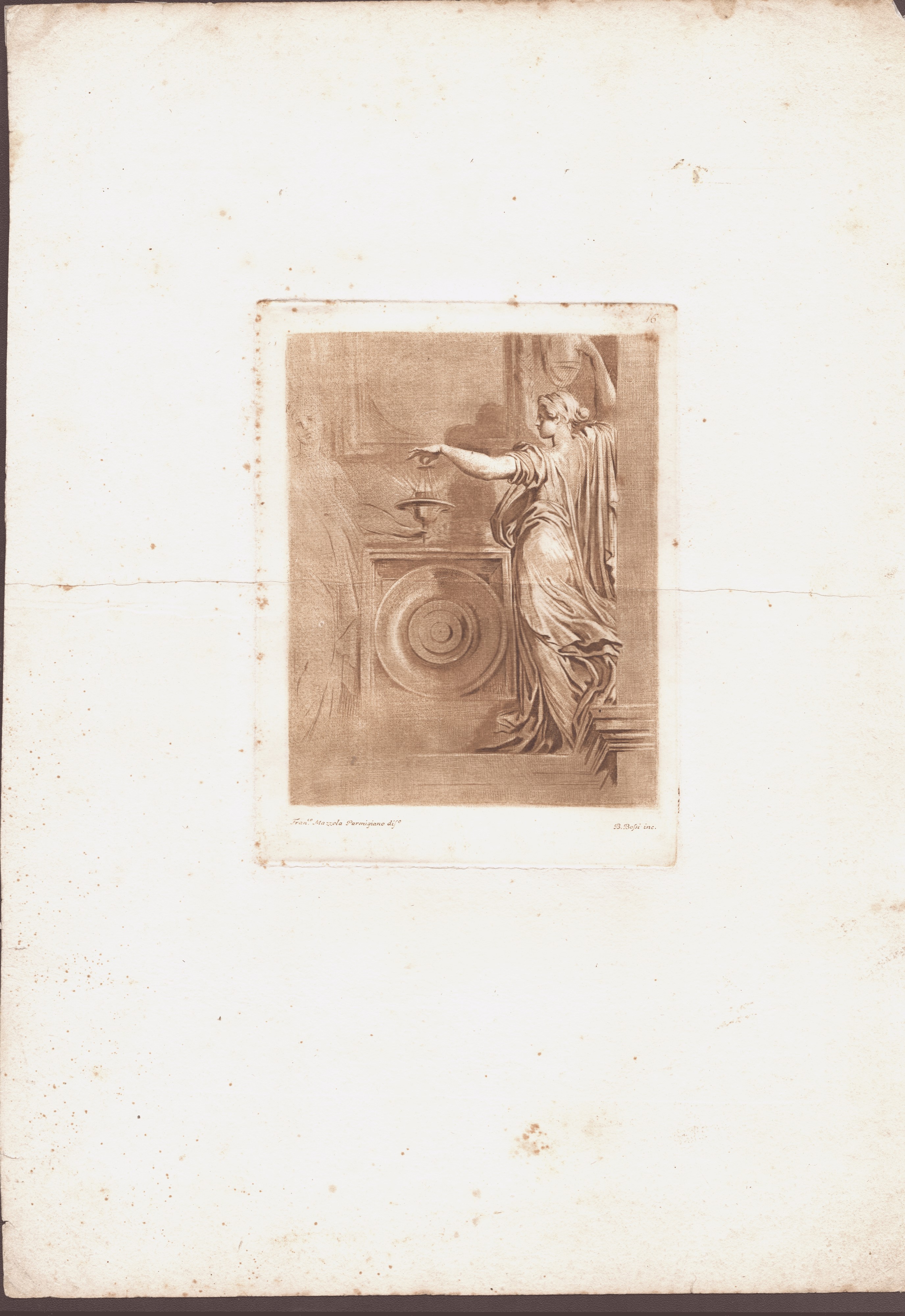 Acquaforte a mezzatinta ad inchiostro bruno, 425 x 305 mm (cad. foglio).