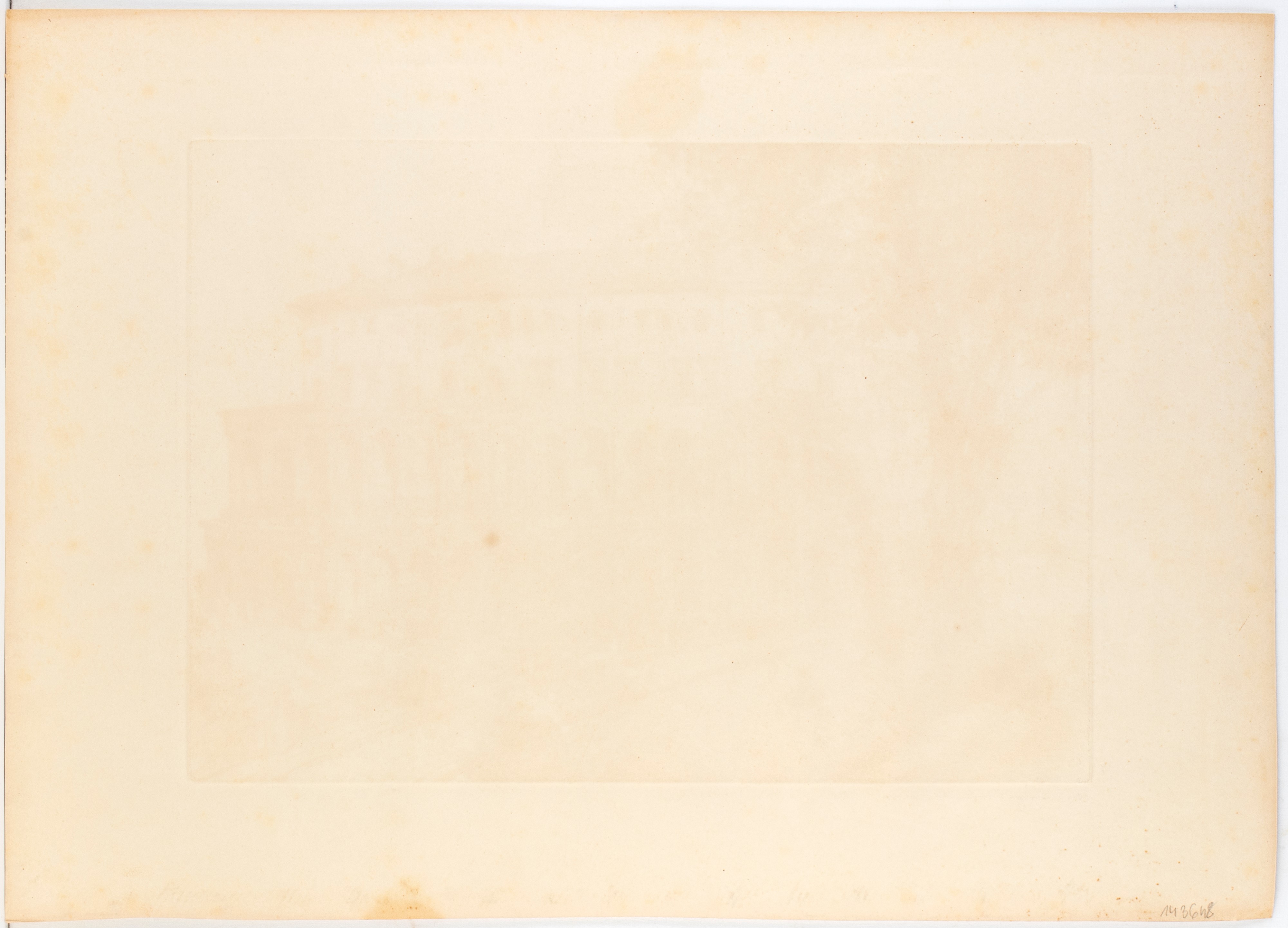 Molto bella impressione di toni di nero forti, stampata su carta non vergata spessa. Foglio con grandi margini, uniformemente brunito. Fioriture sparse e leggere scoloriture da esposizione, ma nel complesso in stato di conservazione buono.
