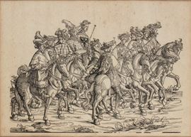 Xilografia, 310 x 420 mm ca. Una di 139 lastre che compongono un fregio di circa 54 metri, raffigurante una processione trionfale in onore di Massimiliano I, Sacro Romano Imperatore.