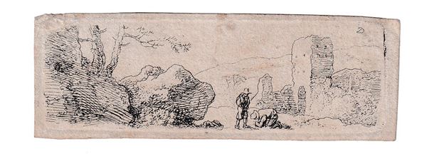 Acquaforte, 27 x 85 mm (lastra), 32 x 92 mm (foglio). I stato su 3, prima dell'aggiunta del numero. Linck 168.