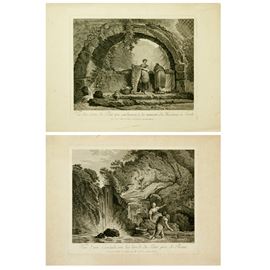 Begli esemplari stampati con accurata inchiostratura su carta vergata con filigrana. Esemplari con grandi margini oltre l’impronta della lastra. Fogli lievemente bruniti e con piccole tracce di sporco e ossidazione e segni di fioritura, ma nel complesso in stato di conservazione molto buono.