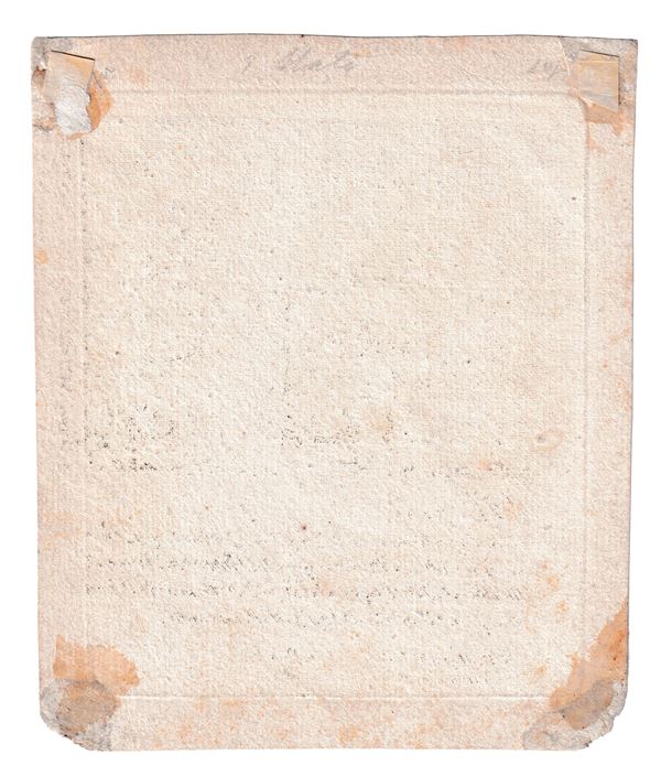 Bella impressione su carta vergata, margini di 1 cm ca. su ogni lato. Assottigliamento della carta e mancanze agli angoli, con residui di colla e di carta al verso. Nel complesso in stato molto buono.