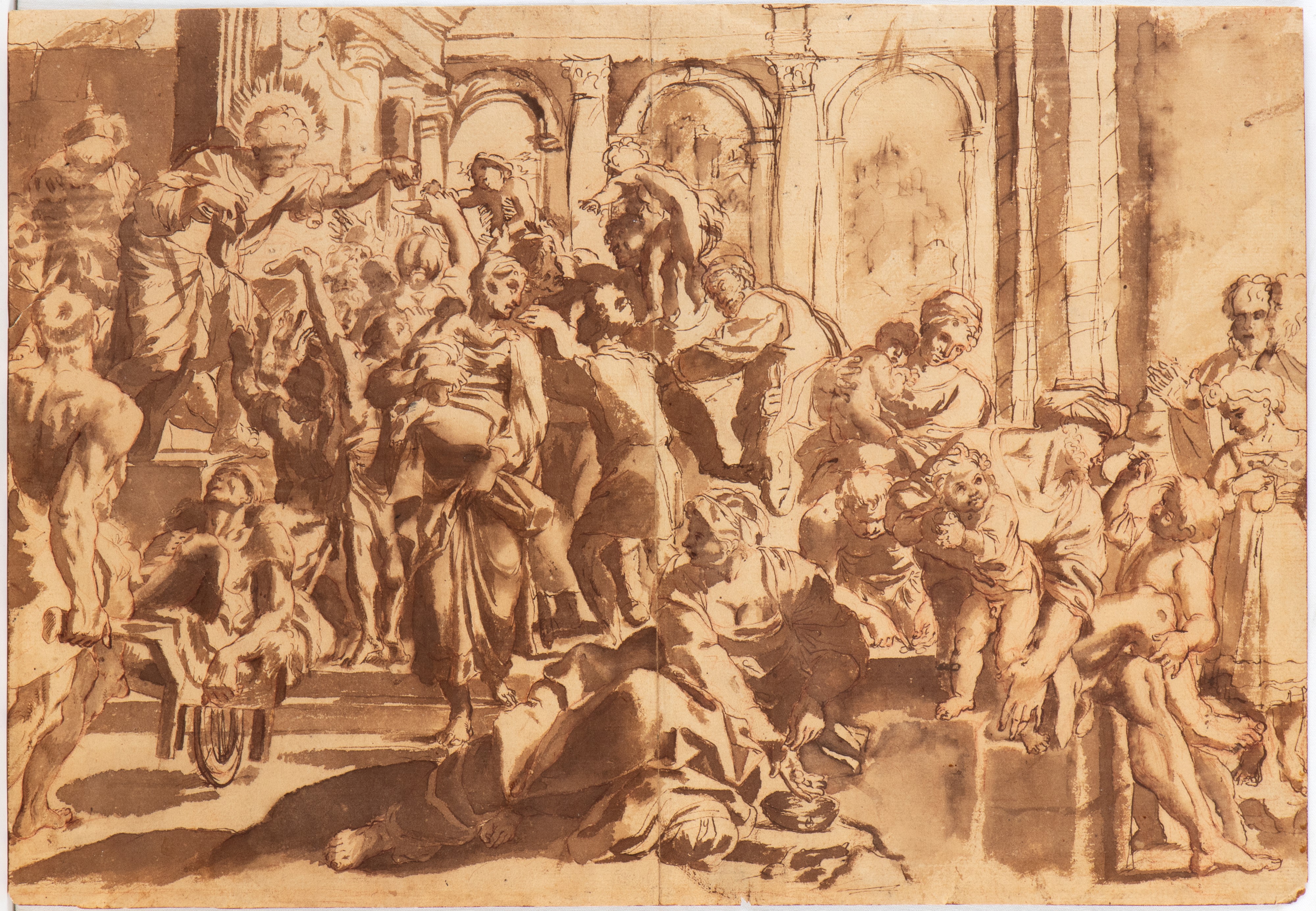 Il disegno deriva da un incisione attribuita a Guido Reni che a sua volta riproduce il dipinto di Annibale Carracci oggi conservato alla Gemäldegalerie Alte Meister di Dresda.