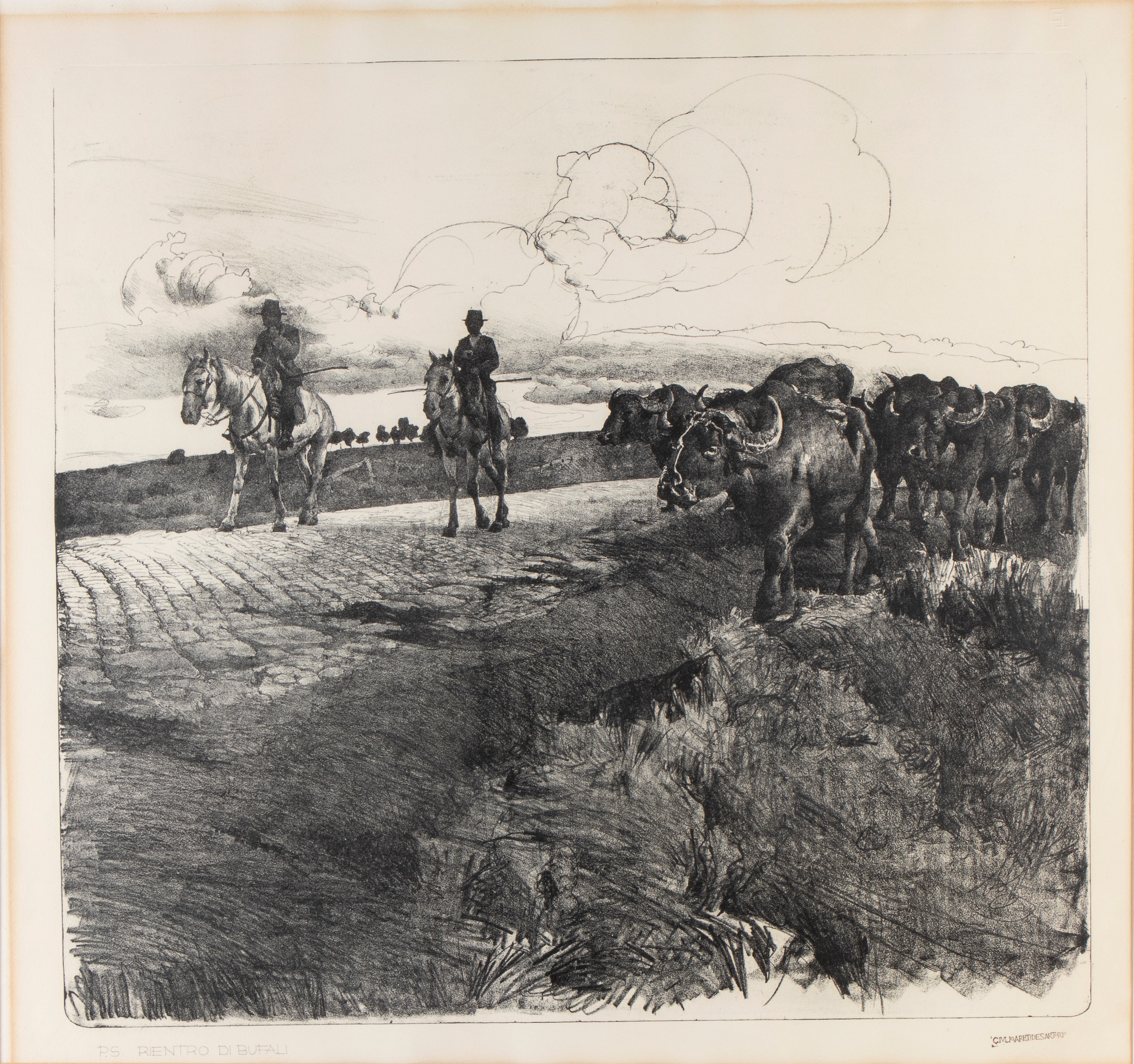 Litografia, 635 x 670 mm (foglio). Timbro GIULIO ARISTIDE SARTORIO in basso a destra.
