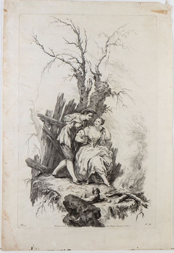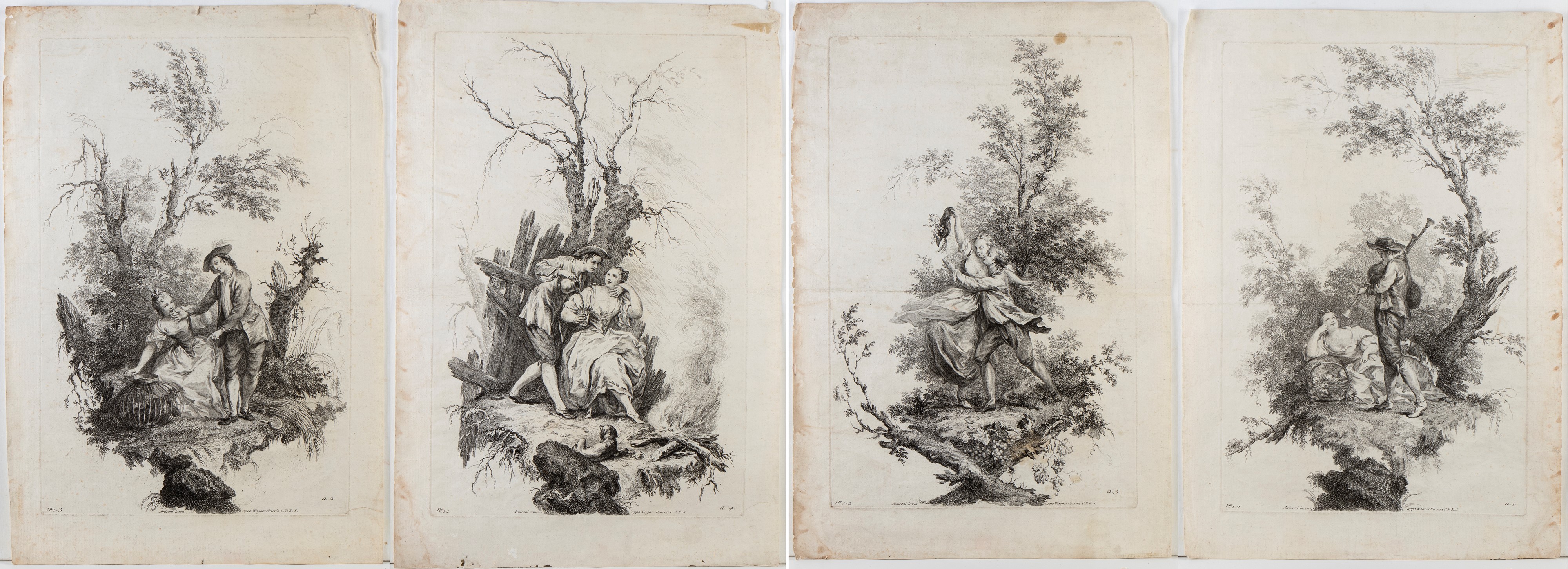 Serie completa di 4 tavole raffigurati quattro stagioni. Acquaforte, 575 x 380 mm (cad. foglio).
