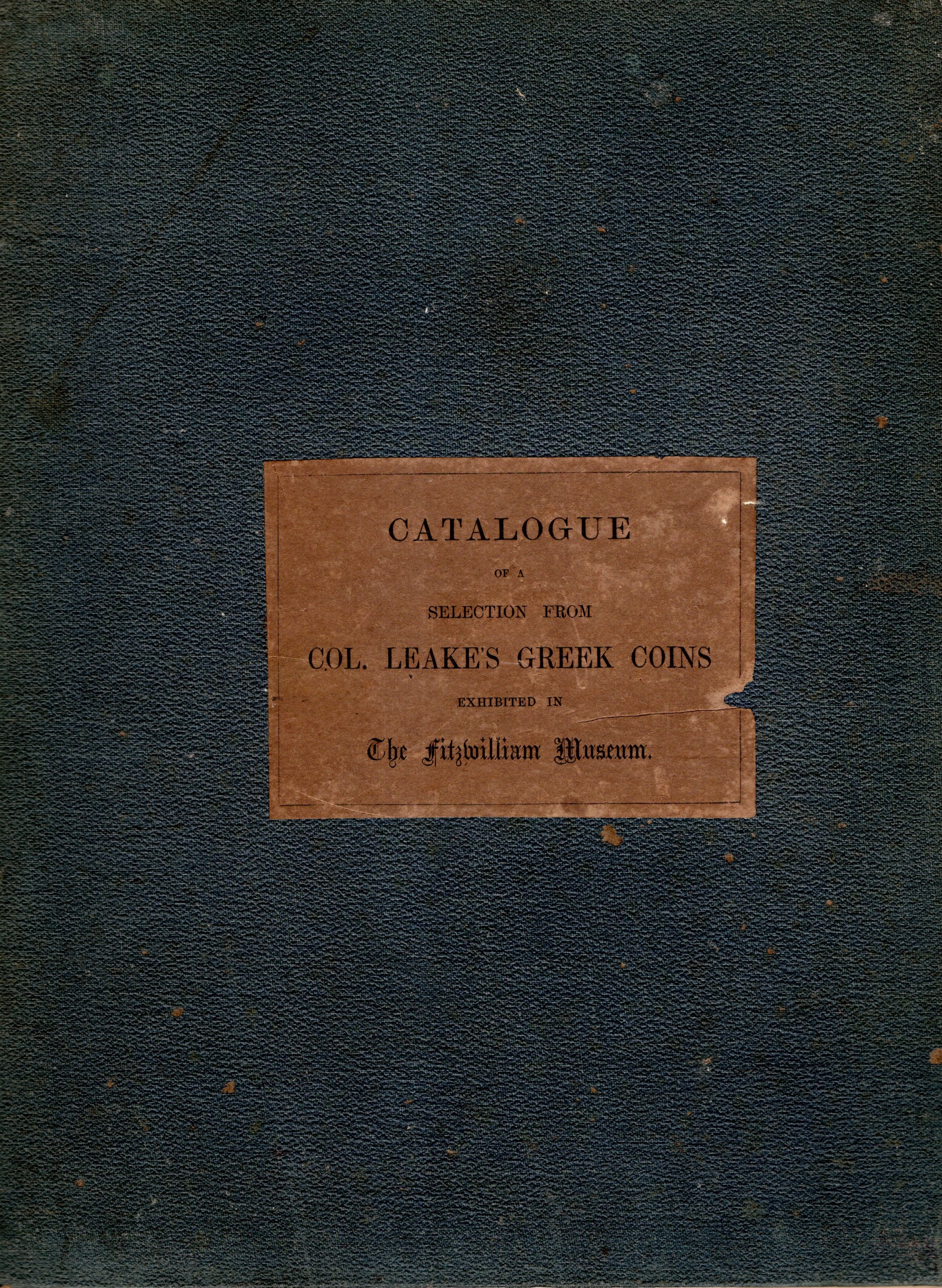 BABINGTON Churchill - Catalogue of a selection from colonel Leake's greek coins exhibited in the Fitzwilliam Museum. Cambridge, 1867. pp 51. Legatura rigida coeva, dorso sciupato, interno buono stato, molto raro e ricercato.