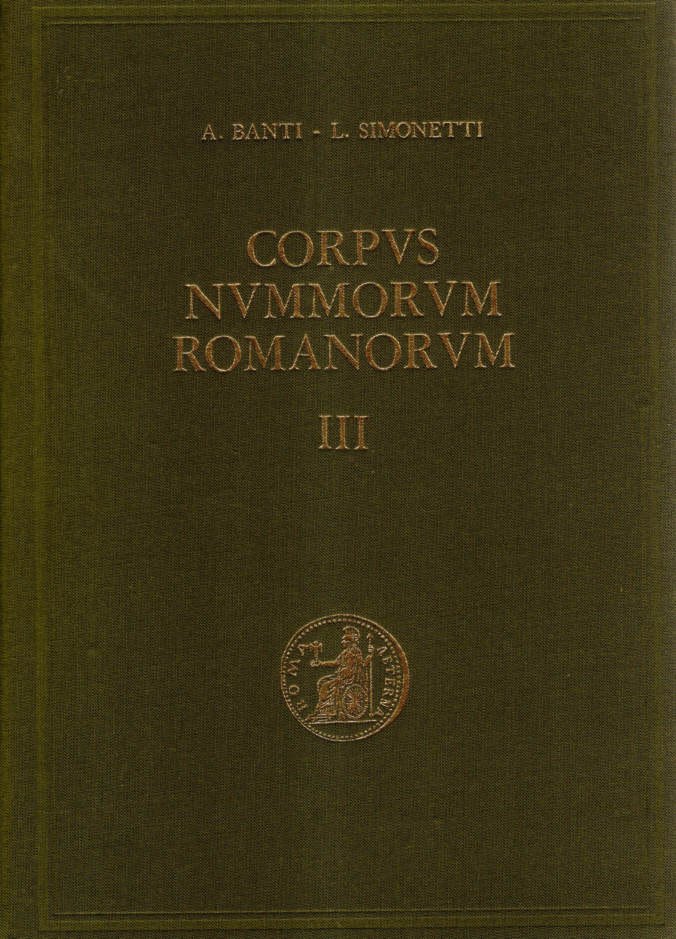BANTI A. - SIMONETTI L. - Corpvs Nvmmorvm Romanorvm. Firenze, 1973. Vol.III. Dalla Famiglia Livineia alla Famiglia Voconia; ( dai Magistrati monetari al nome di Augusto). Prosetto dei ritratti per l'identificazione delle zeccche occidentali. Pp 282, con