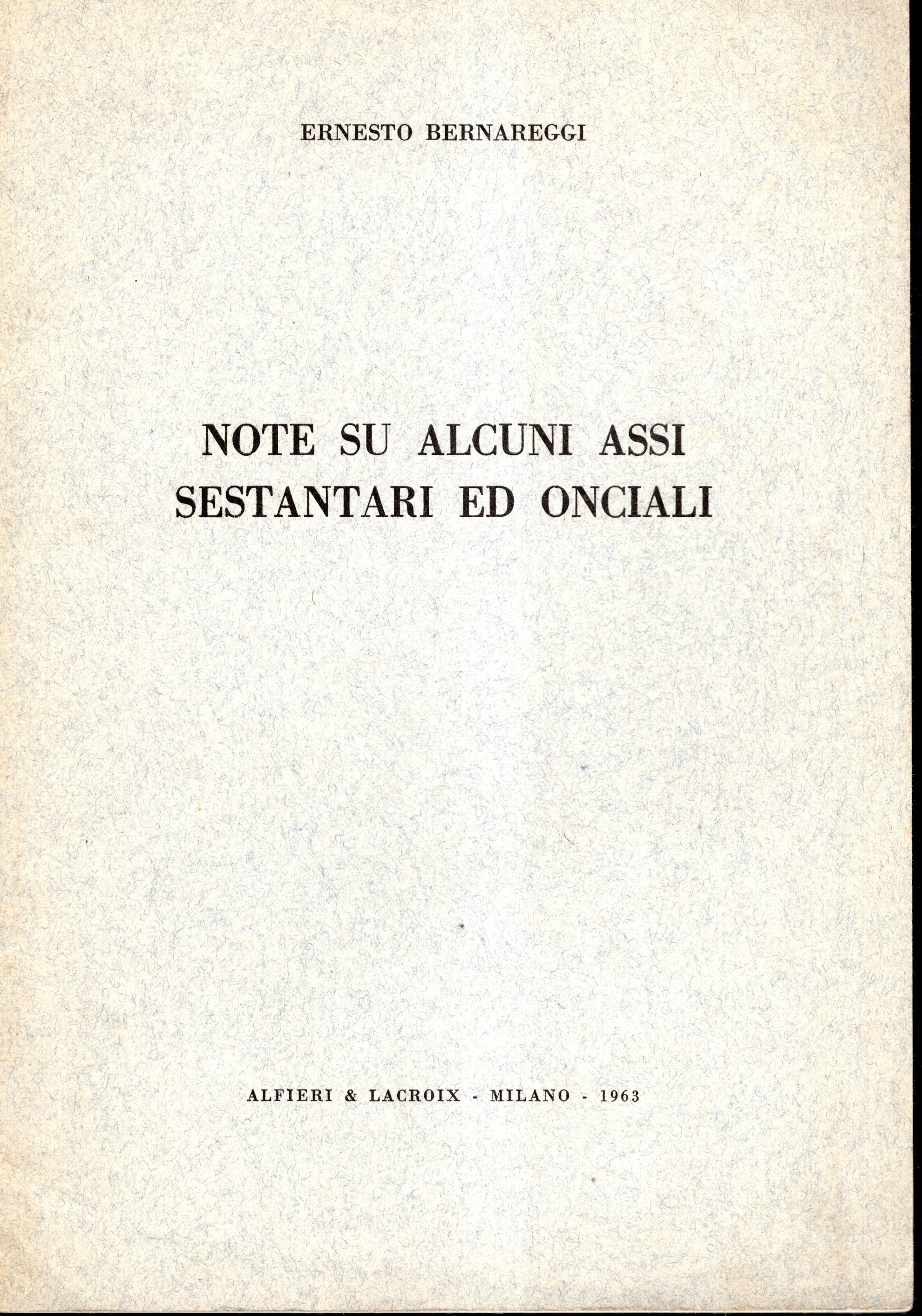 BERNAREGGI Ernesto - Note su alcuni assi sestantari ed onciali. Milano, 1963. pp. 23, tavv. 1. brossura ed. buono stato, raro.