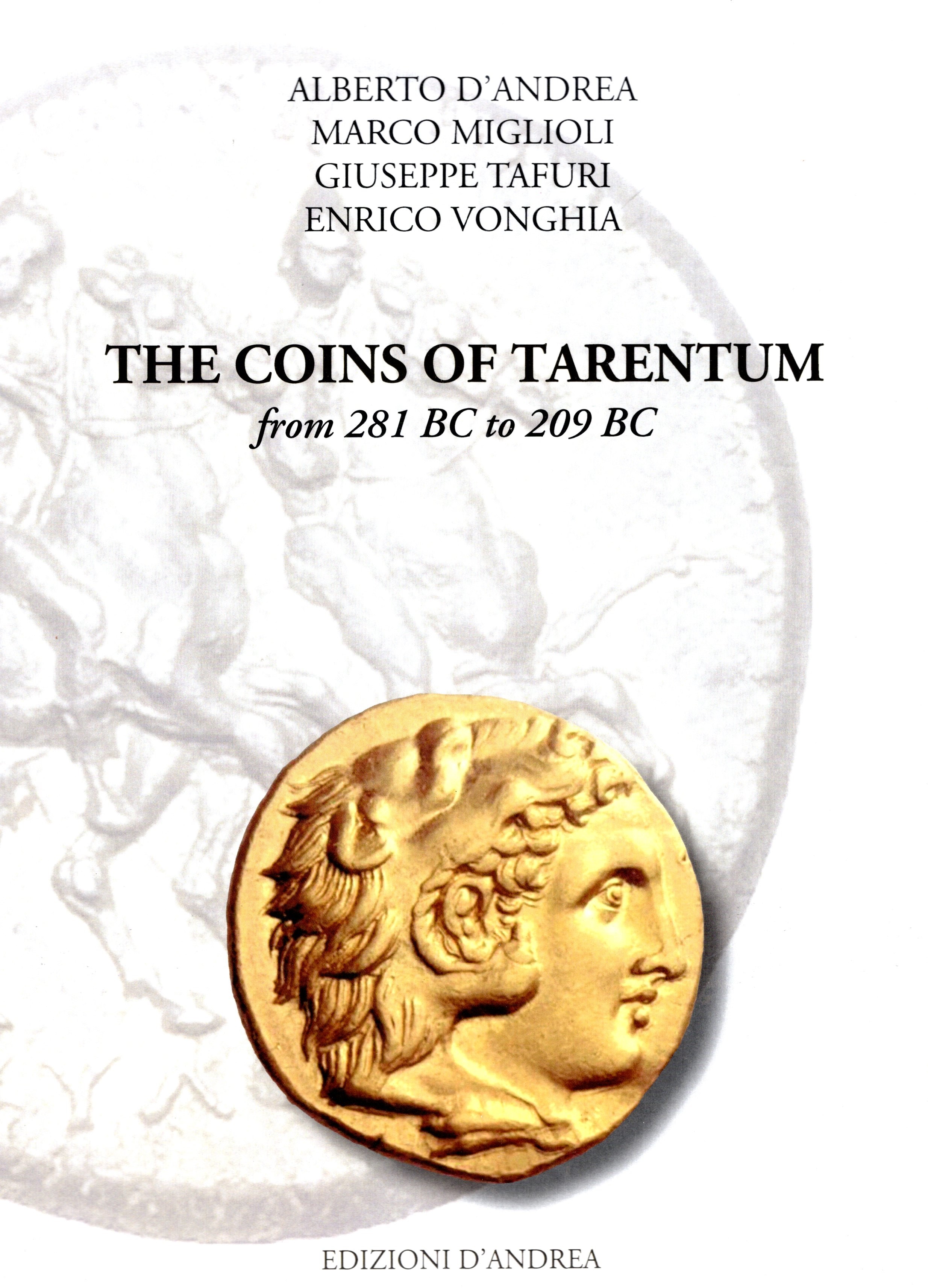 D'ANDREA Alberto- MIGLIOLI Marco- TAFURI Giuseppe - VONGHIA Enrico - The coins of Tarentum from 281 BC to 209 BC. Bari, 2023. pp 394, con 761 illustrazioni a colori nel testo. Legatura ed. ottimo stato.