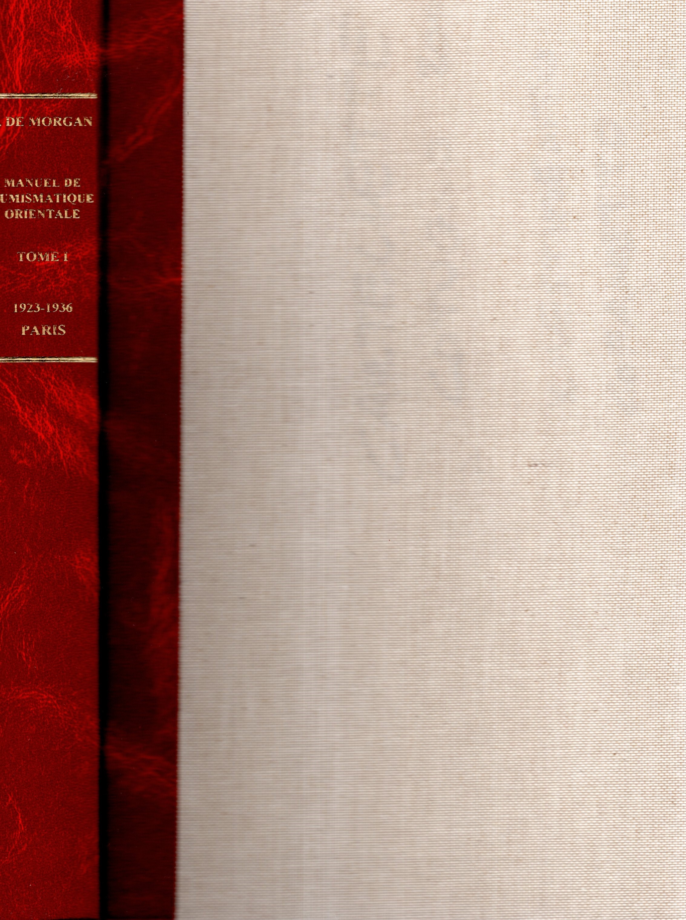 DE MORGAN J. - Manuel de numismatique orientale de l'antiquité et du moyen age. Paris 1923-1936. pp. x - 480, con 624 illustrazioni nel testo. rilegatura rigida moderna in \ similpelle e canapa, interno ottimo stato. importante lavoro di numismatica orie