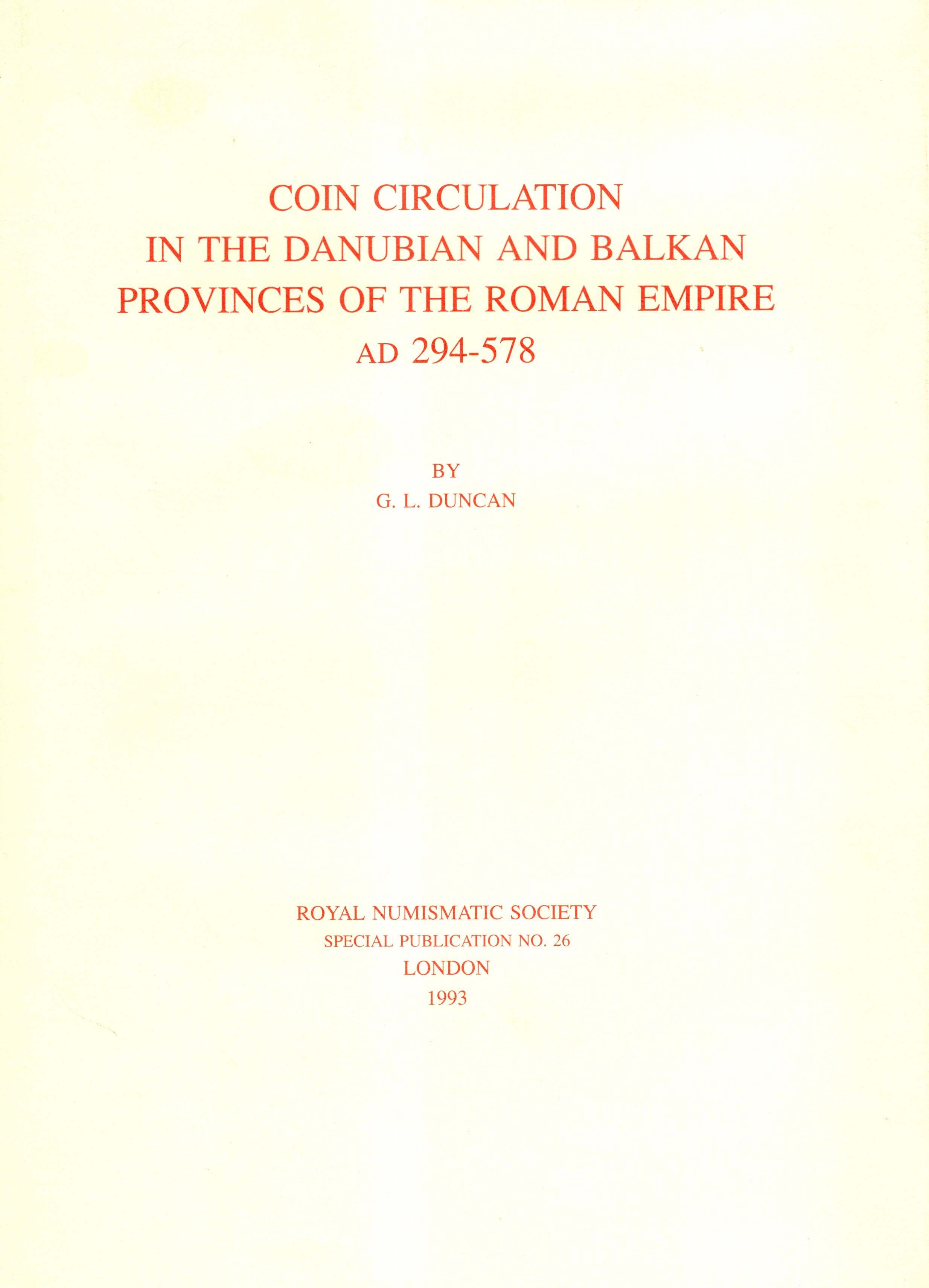 DUNCAN G. L. Coin Circulation in the Danubian and Balkan Provinces of the Roman Empire AD 294-578. London, 1993. pp xiv - 192. Legatura ed. ottimo stato.