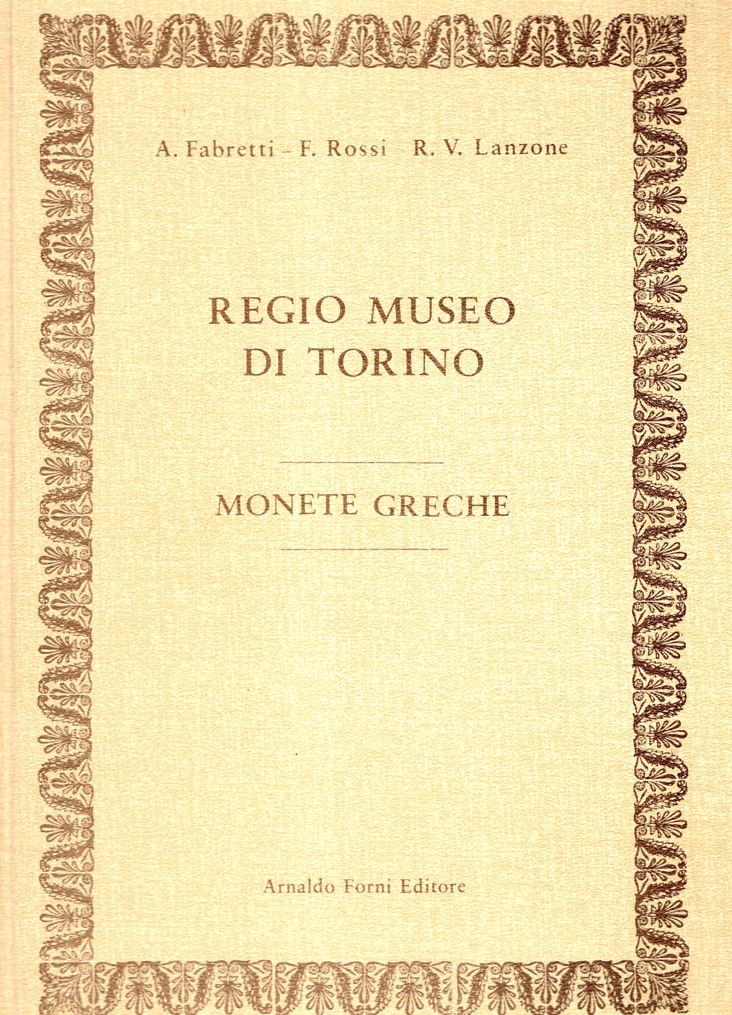 FABRETTI A – ROSSI F. – LANZONE R V. - Monete Greche. Regio Museo di Torino. Bologna, 1978. Pp. 644, tavv. 2 di monogrammi. Legatura rigida ed. Ottimo stato, 9266 monete descritte, raro