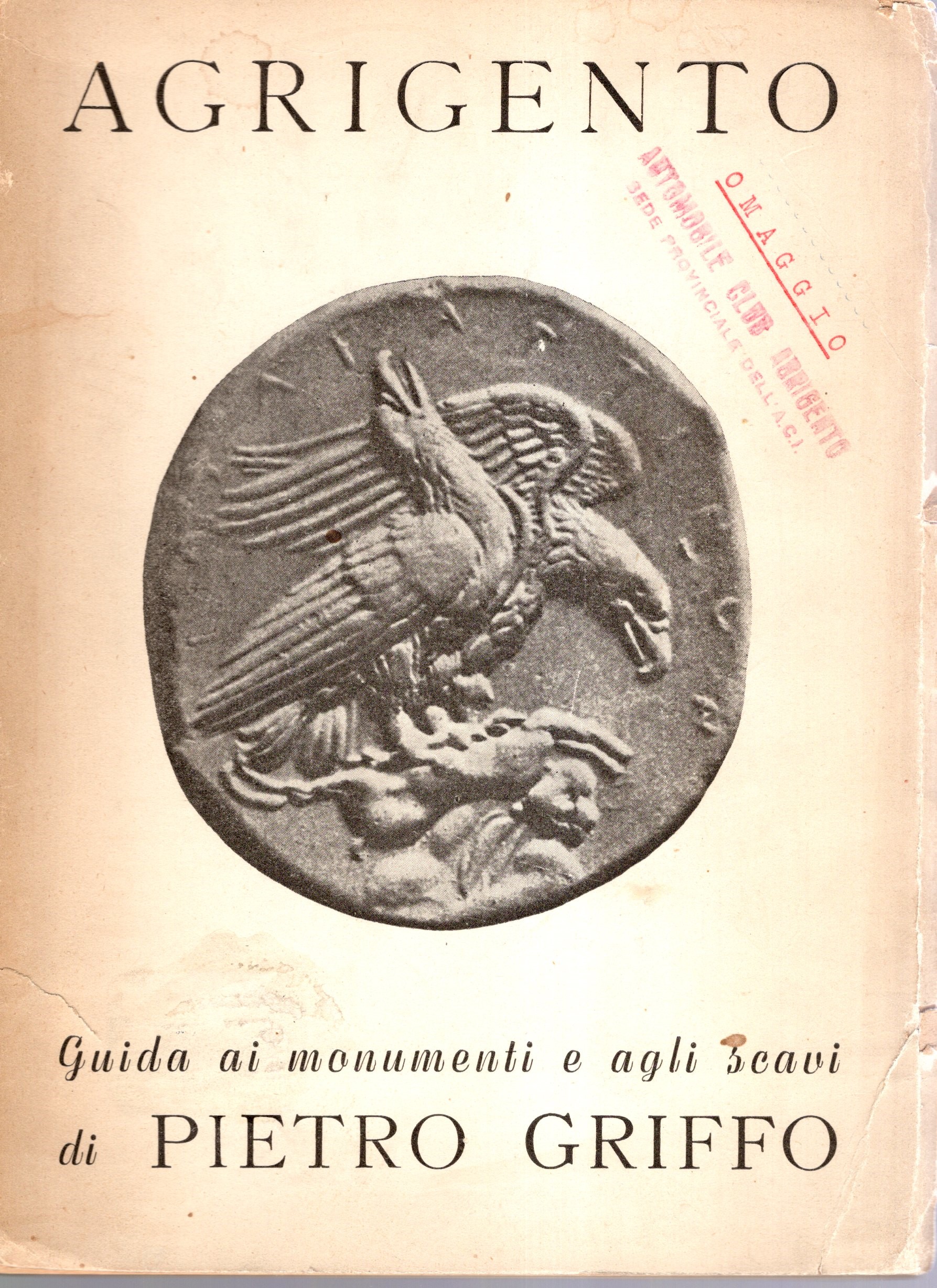 GRIFFO Pietro - AGRIGENTO. Guida ai monumenti e agli scavi. Agrigento, 1950. pp 134, tavole 63. Legatura ed. sciupata, interno buono stato, molto raro