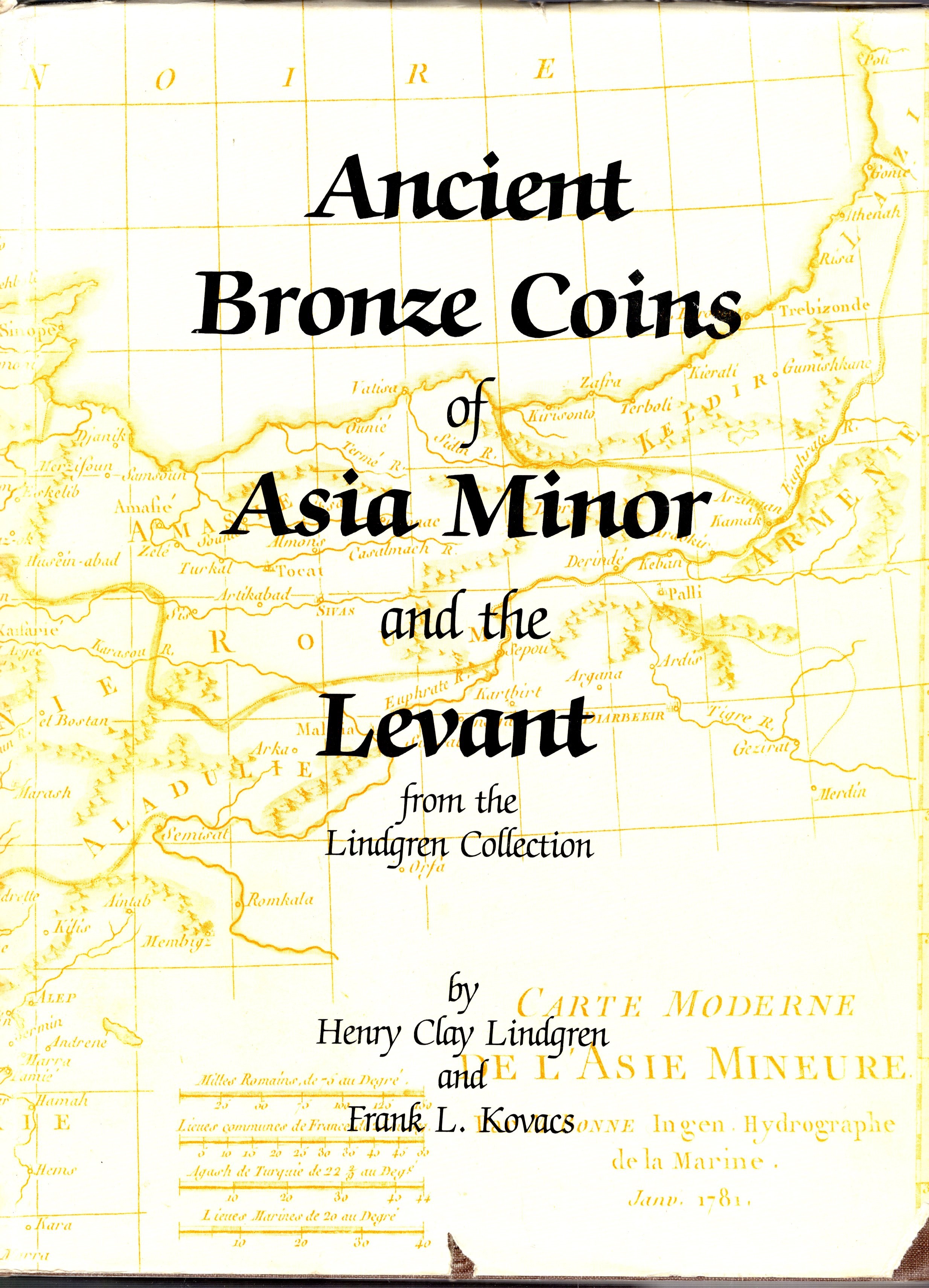 LINDGREN Clay Henry - KOVACS Frank L. - Ancient bronze coins of Asia Minor and the Levant from the Lindgren collection. San Mateo California, 1985. pp xv - 212, tavole 135. Allegato lista Valutazioni. Legatura ed. sovracoperta sciupata, interno buono stat