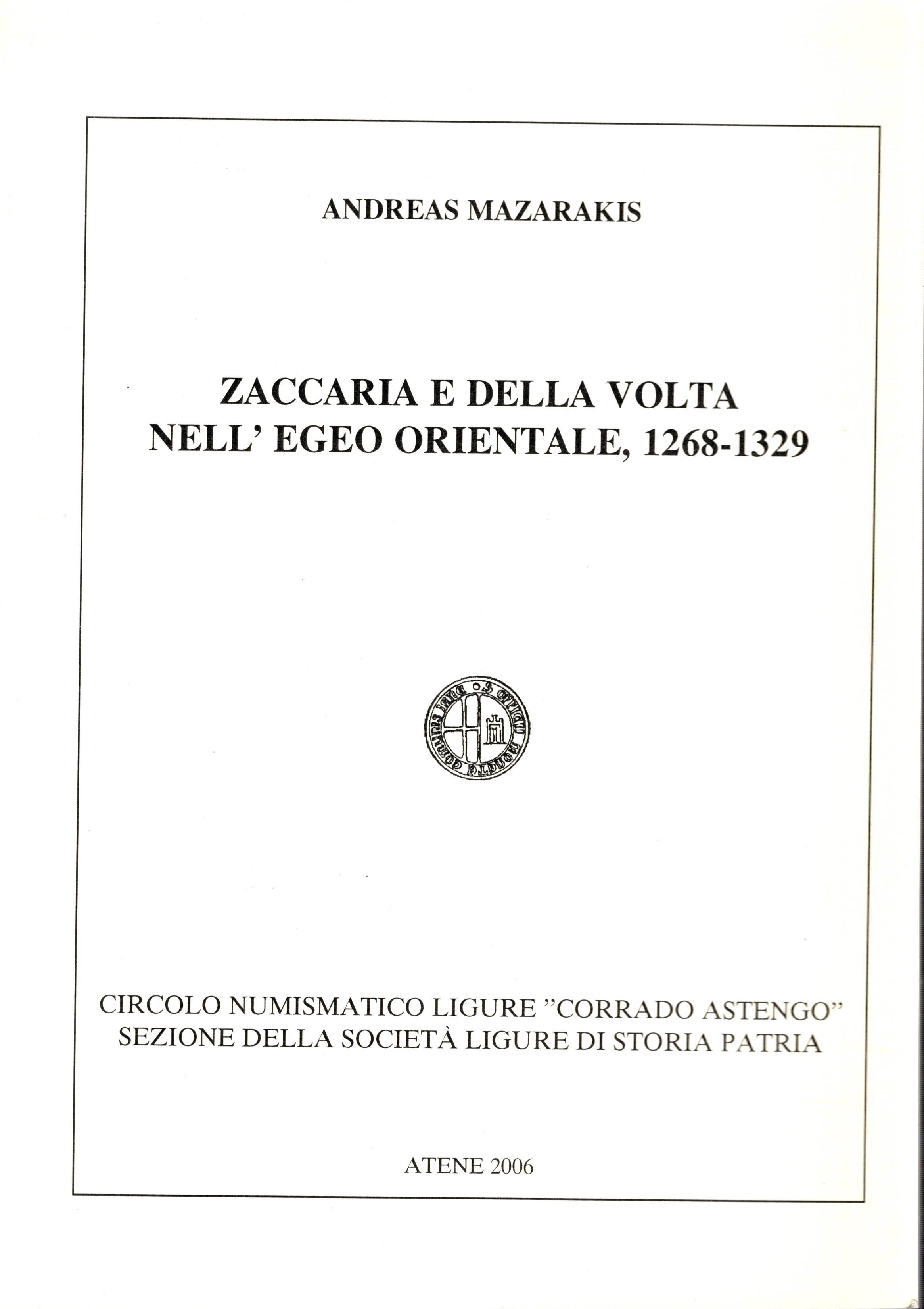 MAZARAKIS A. - Zaccaria e Della Volta nell'Egeo orientale, 1268-1329. Atene, 2006. pp 91, tavv. 9 + illustrazioni nel testo. brossura ed. ottimo stato. raro e importante