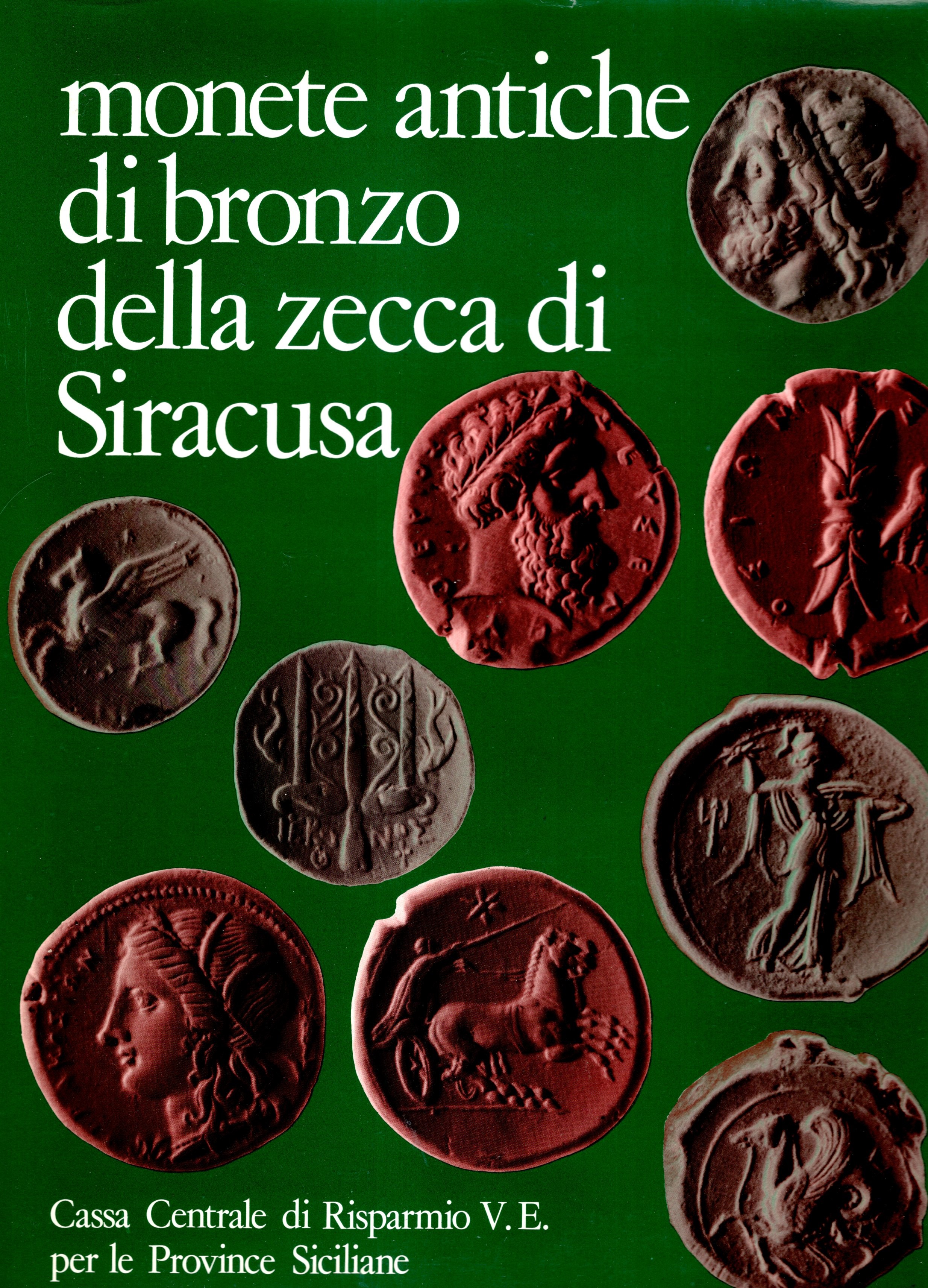 MINI Adolfo - Monete antiche di bronzo della zecca di Siracusa. Novara, 1977. Pp. 191, tavole 16 a colori + illustrazioni nel testo b\n. Legatura ed. sovracoperta sciupata, interno ottimo stato. ancora oggi consultato.