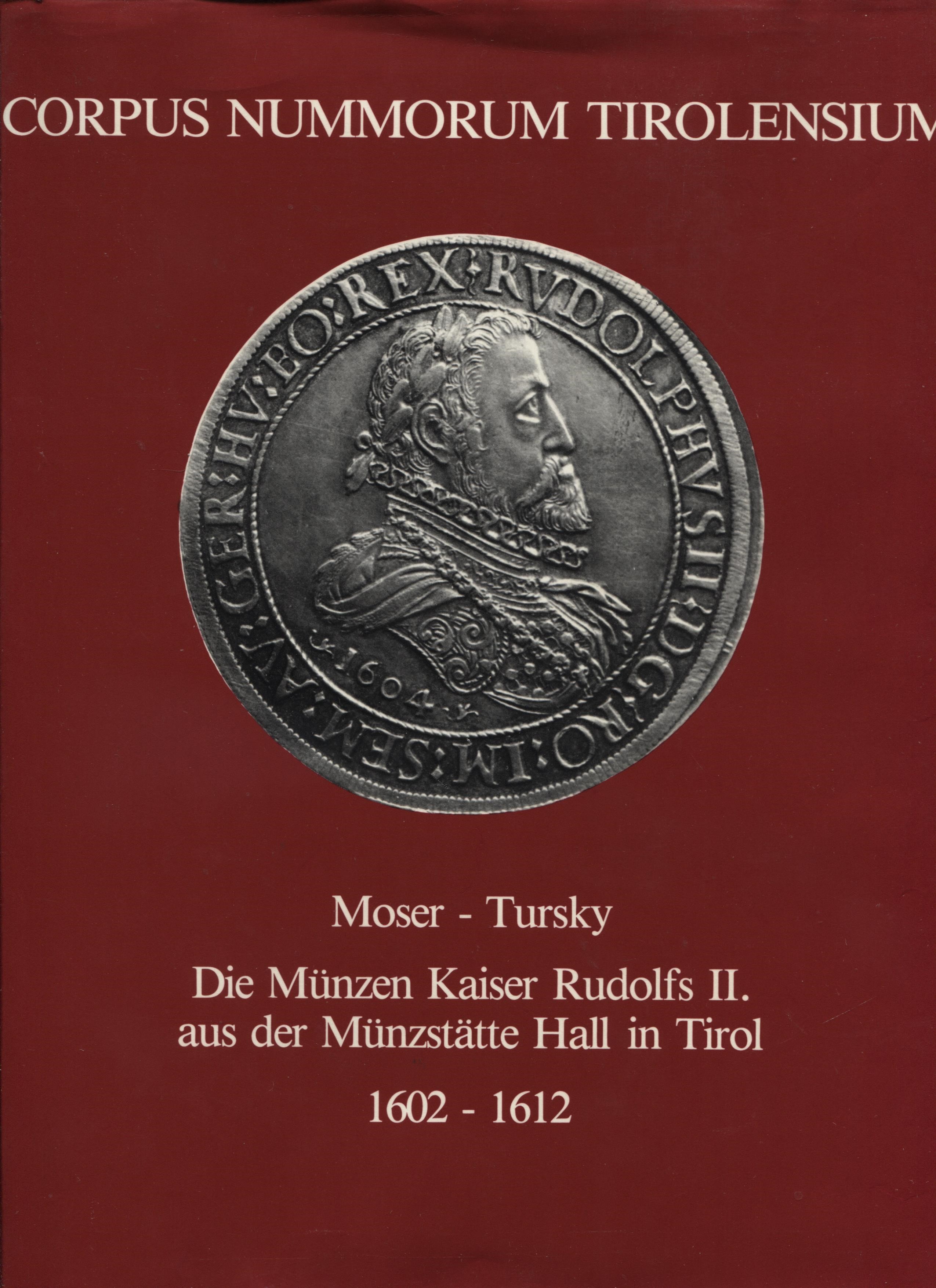 MOSER H. – TURSKY H. – CORPUS NUMMORUM TIROLENSIUM. Die munzen Kaiser Rudolfs II. aus der Munzstatte Hall in Tirol. 1602 - 1612. Innsbuck, 1986. pp. 215, plates and ill. in the text b\n. ril and dustjacket worn, interior in excellent condition. importa