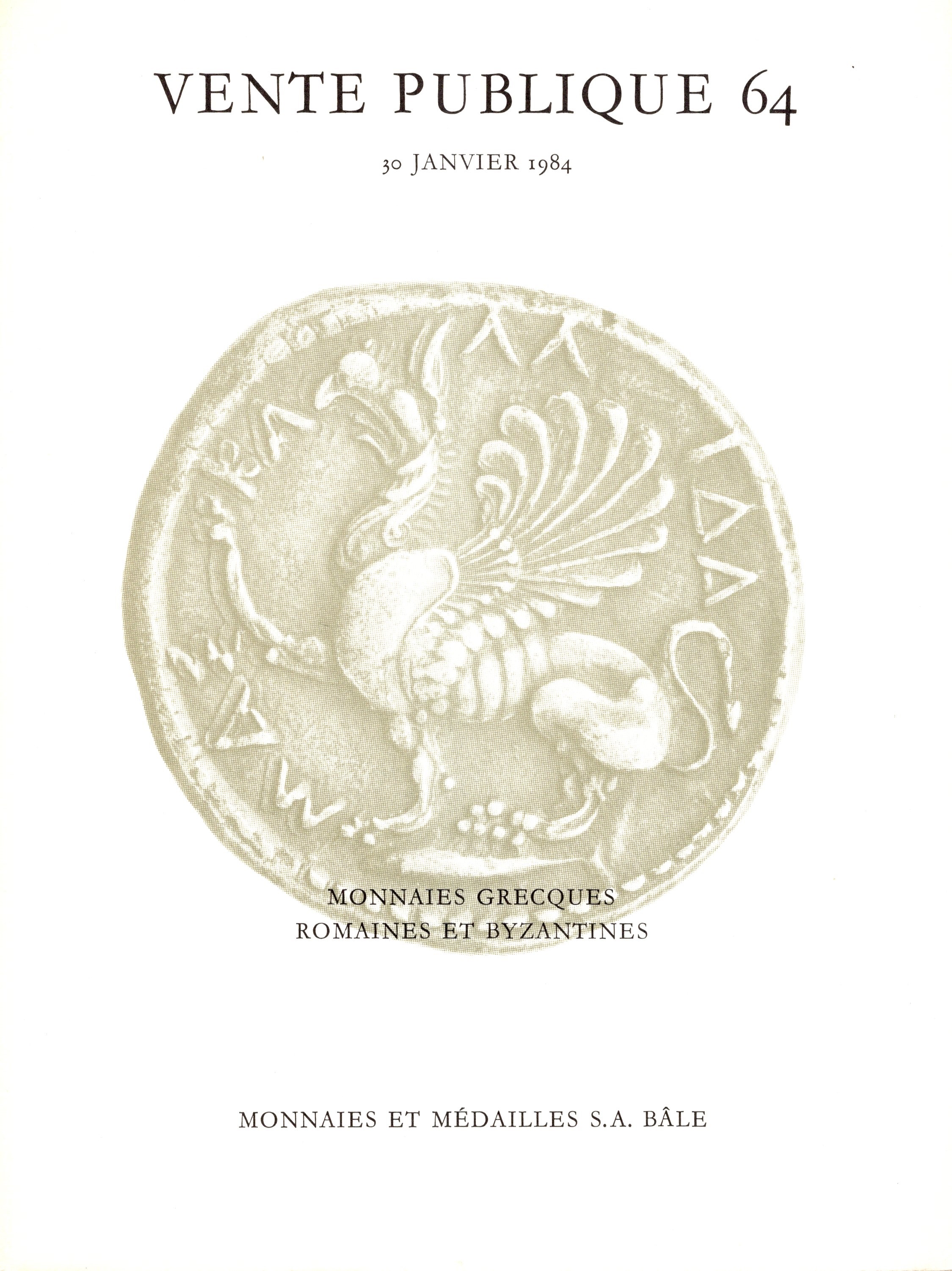 MUNZEN und MEDAILLEN. – Vente publique 64. Basel, 30 - Janvier, 1984. Monnaies grecques, Romaines et Byzantines. Pp. 47, lots 354, plates 31. Brossura ed. buono stato.