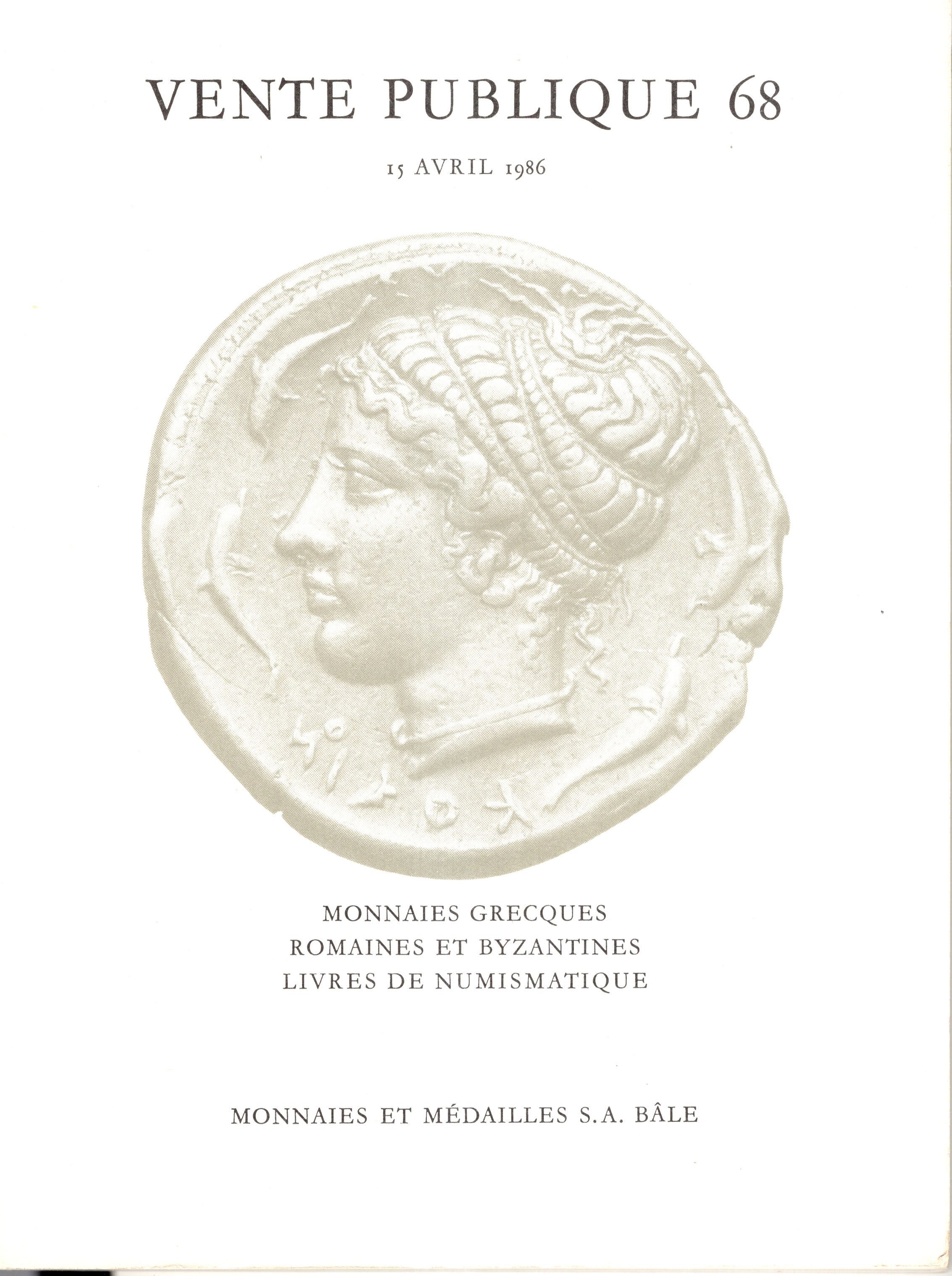 MUNZEN UND MEDAILLEN A.G. – Auktion 68. Bale, 15 – Avril, 1986. Monnaies grecques, romaines et byzantines. Livres de numismatique. Pp. 68, lots 625, plates 31. Legatura ed. buono stato, lista prezzi Aggiudicazione, ottima vendita, importante serie Sic