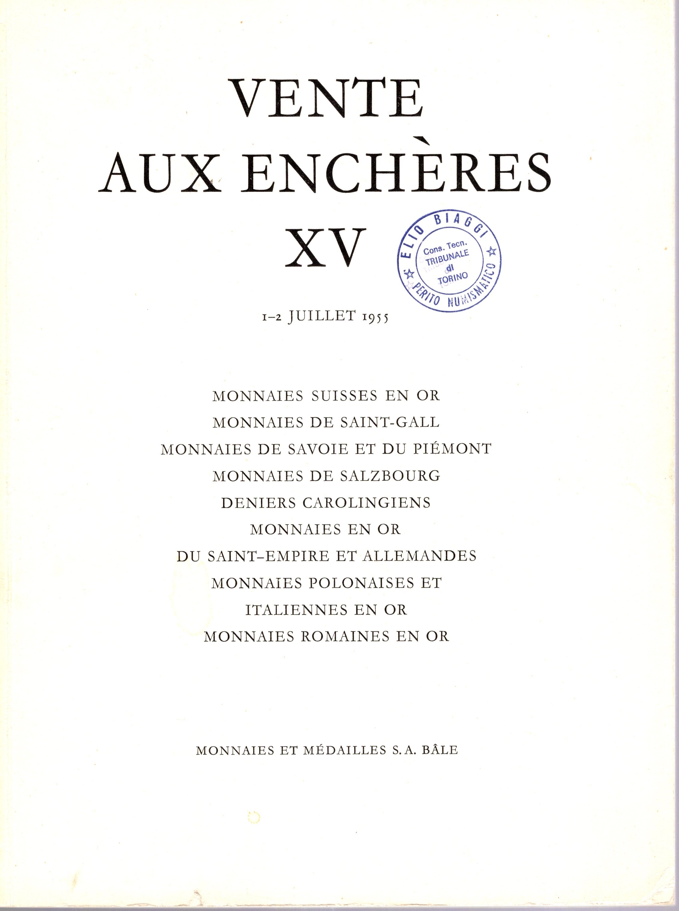 MUNZEN und MEDAILLEN S.A. Vente publique XV. Basel, 1\2 – Juillet, 1955. Monete d’oro svizzere, polacche, italiane, tedesche, monete di casa Savoia e del Piemonte collezione Rasero, e un importante raccolta portoghese di aurei romani. Pp. 66, lots 907, pl