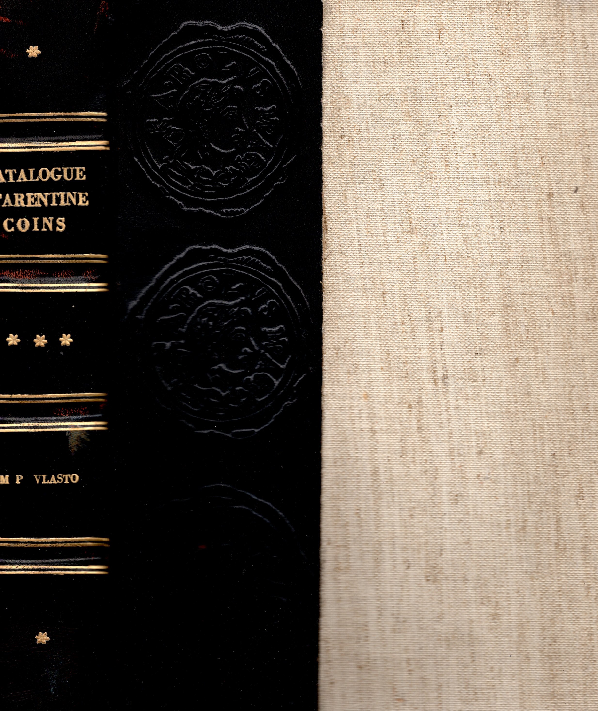 RAVEL Oscar - Descriptive catalogue of the collection of tantine coins formed by M.P.Vlasto > Londra 1947. Testo in FOTOCOPIA, bellissime tavole fotografiche Pp. ix - Bellissima Legatura in \ pelle con incisioni, e scritte sul dorso pelle con scritte