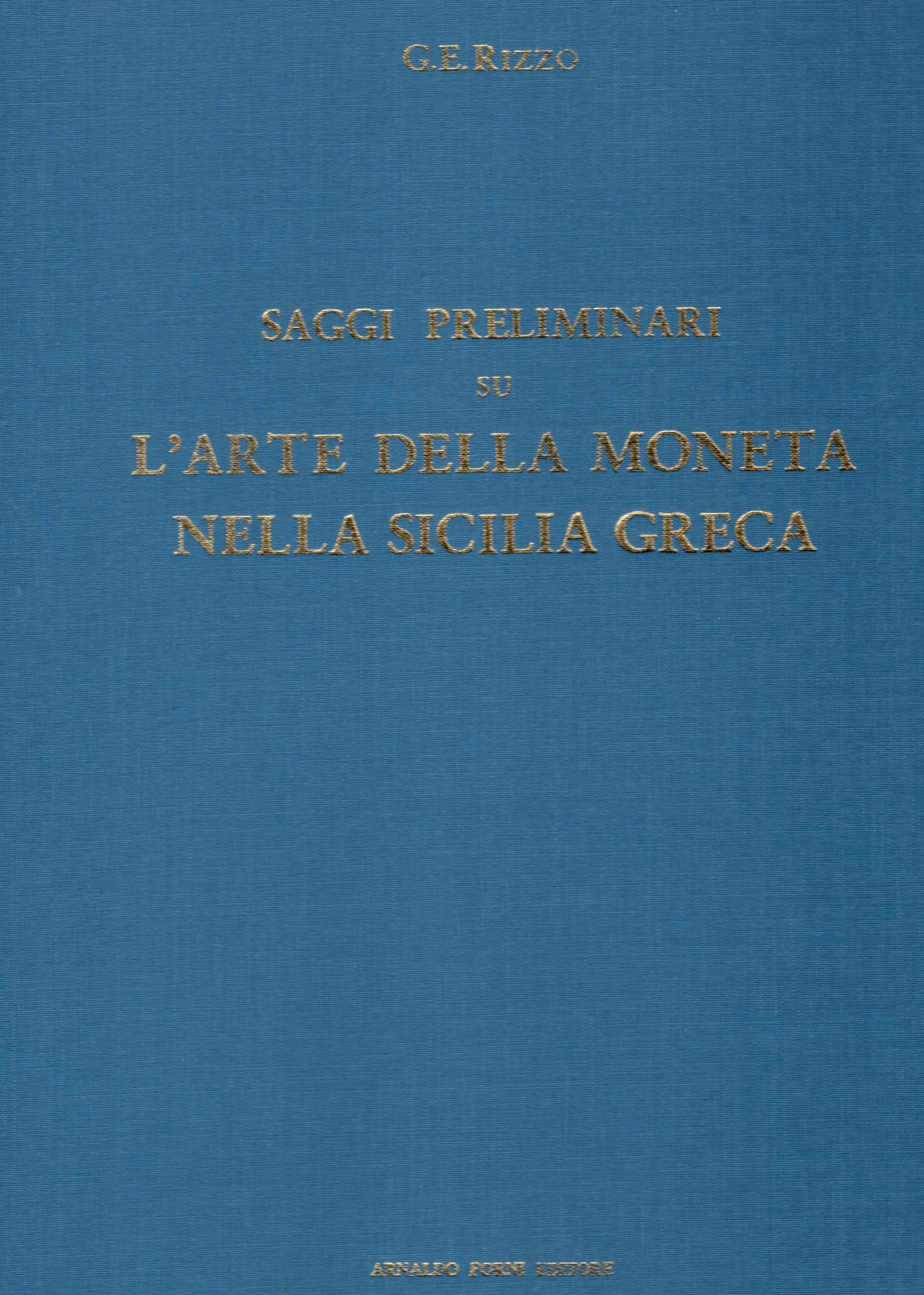 RIZZO G. E. - Saggi preliminari su l’arte della moneta nella Sicilia greca. Bologna, 1980, tavv. e ill. nel testo. ril. ed. ottimo stato, importante lavoro. C.S. 2200