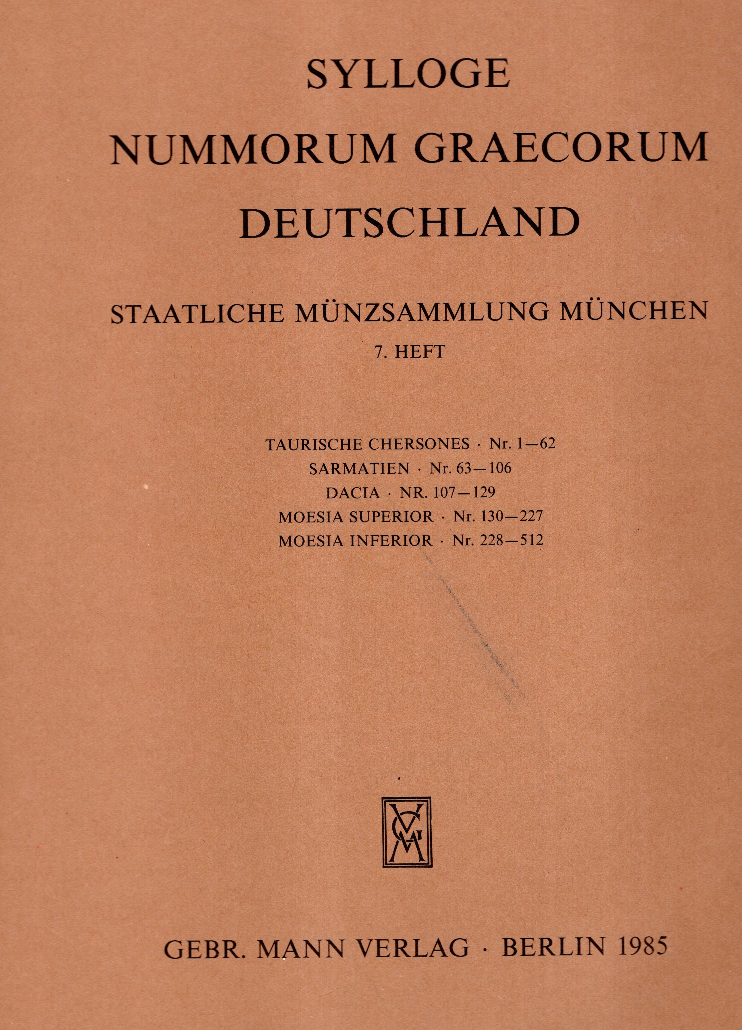 SYLLOGE NUMMORUM GRAECORUM. Staatliche munzsammlung Munchen. 7 Heft. Taurische Chersones - Sarmatien - Dacia - Moesia Superior - Moesia Inferior. Berlin, 1985. pp non num. plates, 20. Legatura ed. ottimo stato.