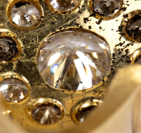 a forma di stella in oro giallo, impreziosito da un pavé di diamanti, stimati per un peso di 1.60 ct circa, colore G-H, purezza VS-SI come misurati e classificati nella montatura.