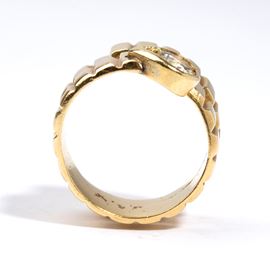 in oro giallo, a forma di serpente, con diamante centrale di forma rotonda, taglio brillante, di circa 0.40 ct, colore H-I, pureza VS, come misurati e classificati nella montatura.