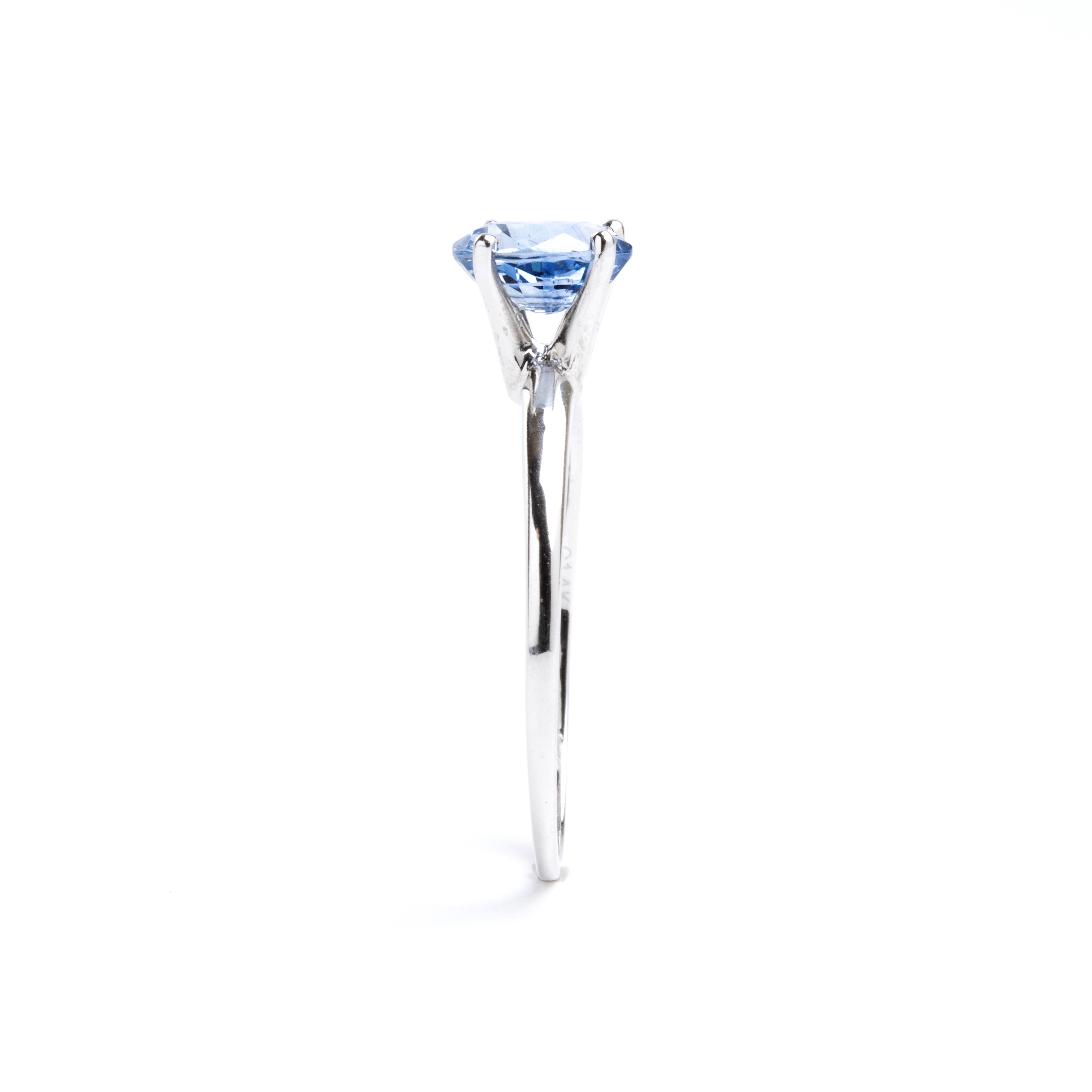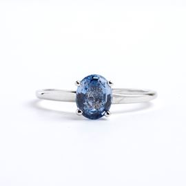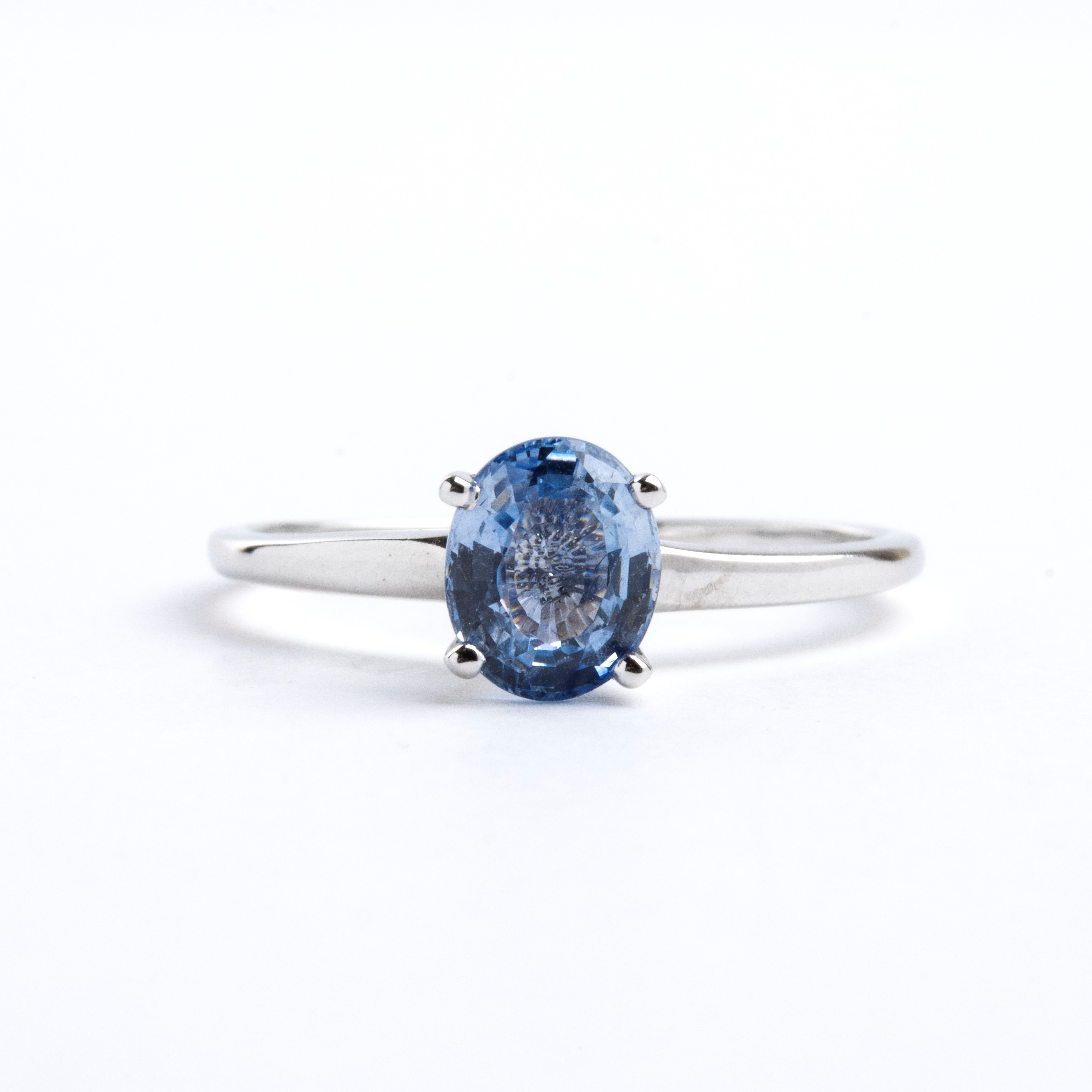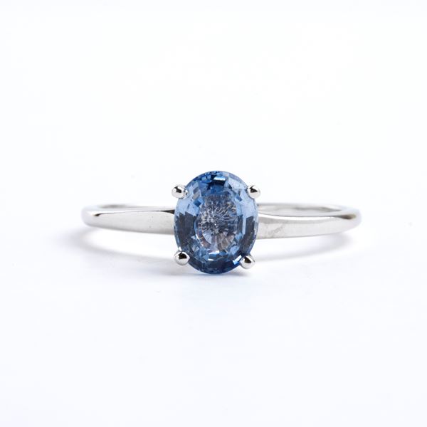 oro bianco 14k, incastonato con zaffiro ovale.