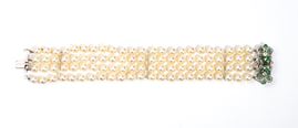 Bracciale in oro con perle, diamanti e smeraldi