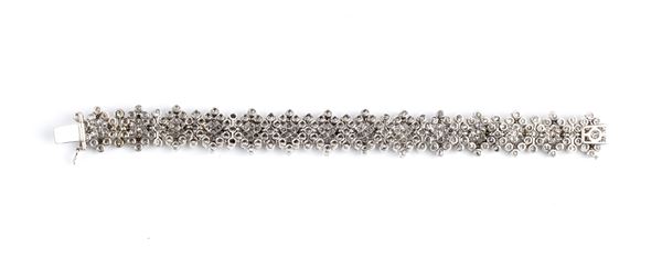 a nastro flessibile in oro bianco, incastonato con n. 294 diamanti taglio brillante, stimati per un peso totale di circa 18.00 ct, colore E-F, purezza VVS- VS.