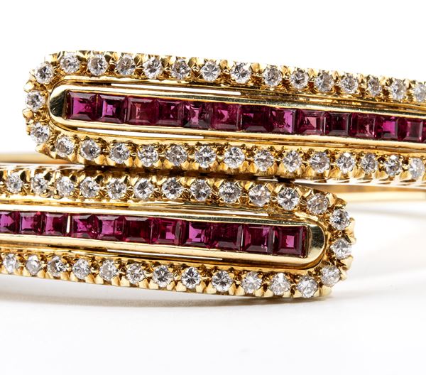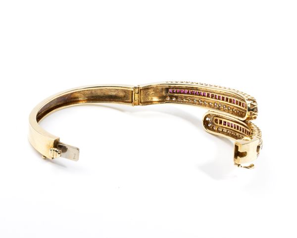 Bracciale rigido in oro con diamanti e rubini