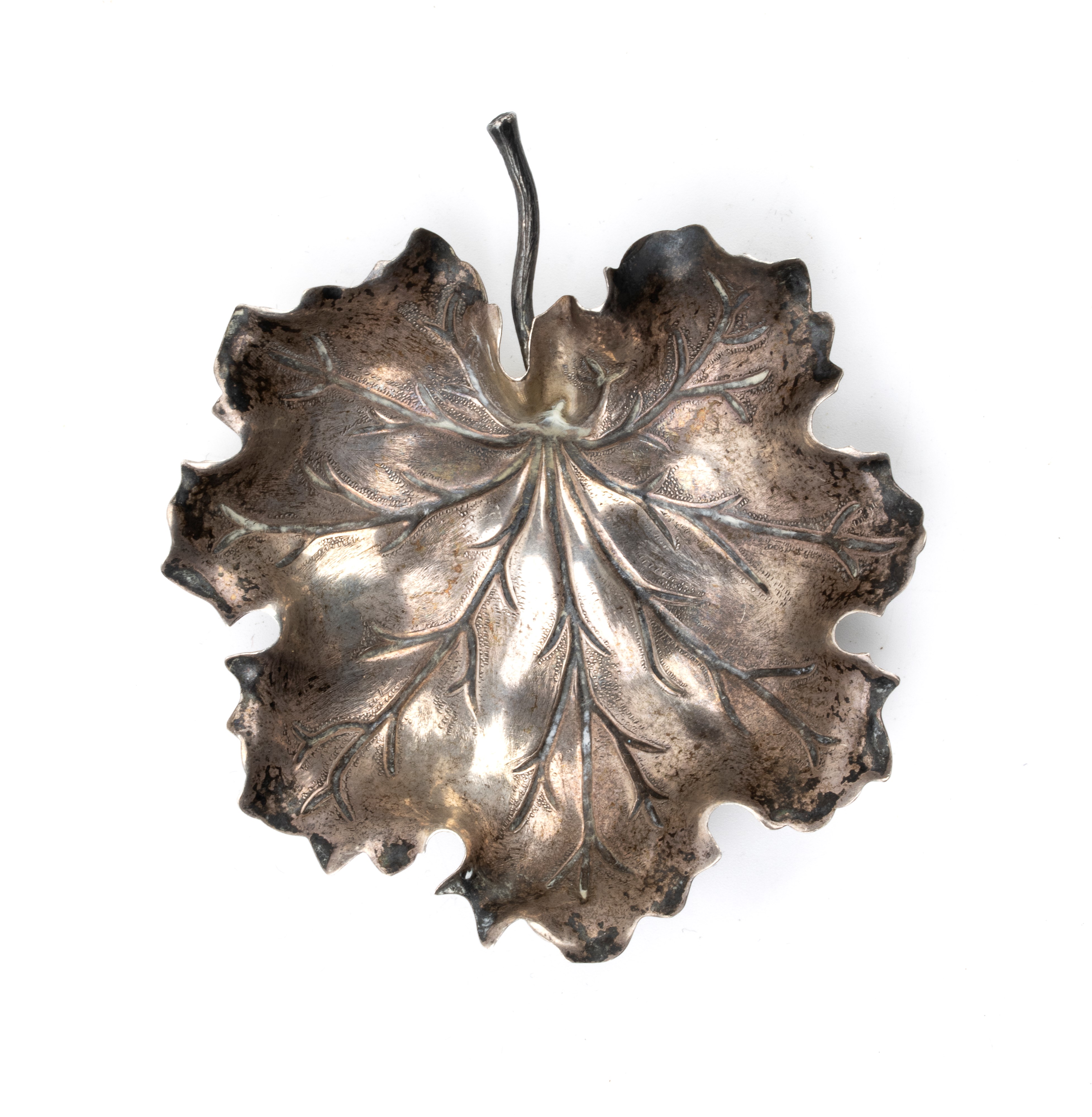 Buccellati, collezione nature: ciotola leaves foglia di geranio in argento, XX secolo