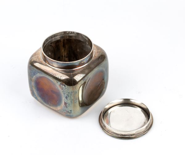 a forma di cubo con lati concavi e coperchio con chiusura ad innesto.