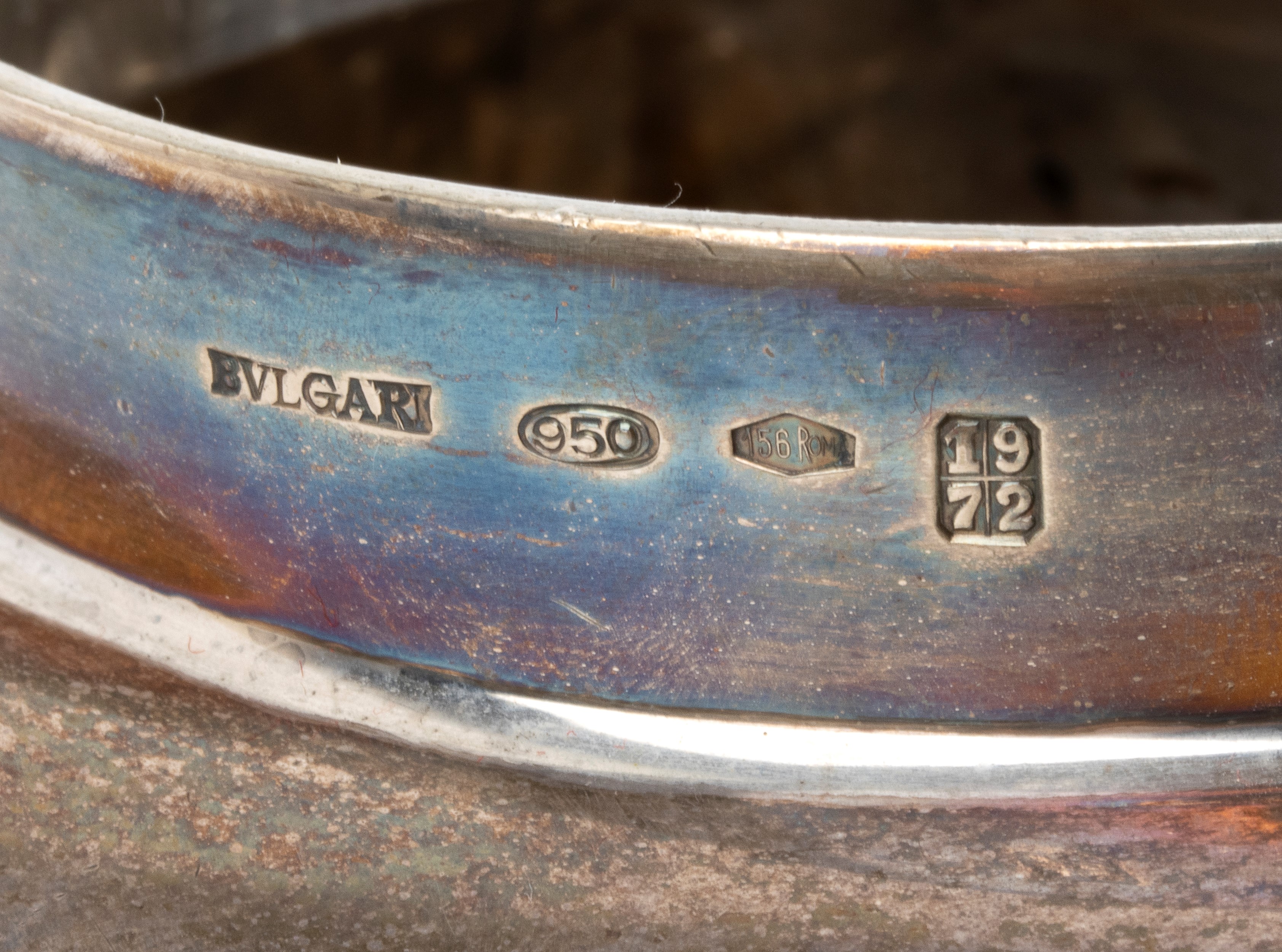 Argento 950/1000, punzonata "BVLGARI - 950 - 156 Roma - 1972".