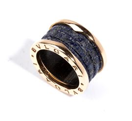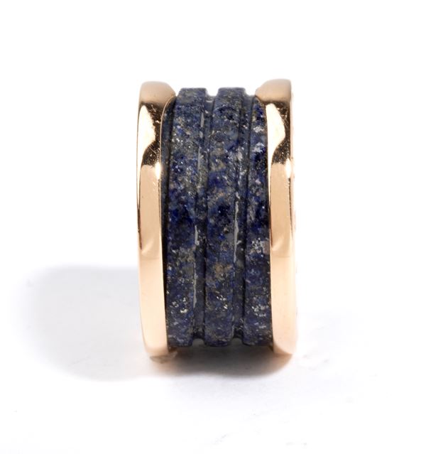 in oro giallo 18k, impreziosito da un inserto di lapislazzuli centrale. Firmato BULGARI.