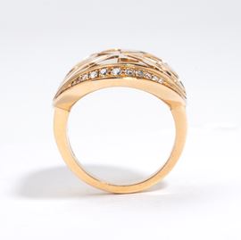 in oro giallo 18k, con un motivo ovale traforato incastonato con diamanti e contenente una madreperla bianca. Firmato BULGARI.