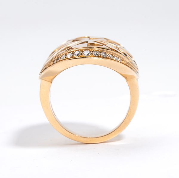 Collezione Intarsio: anello in oro con madreperla e diamanti