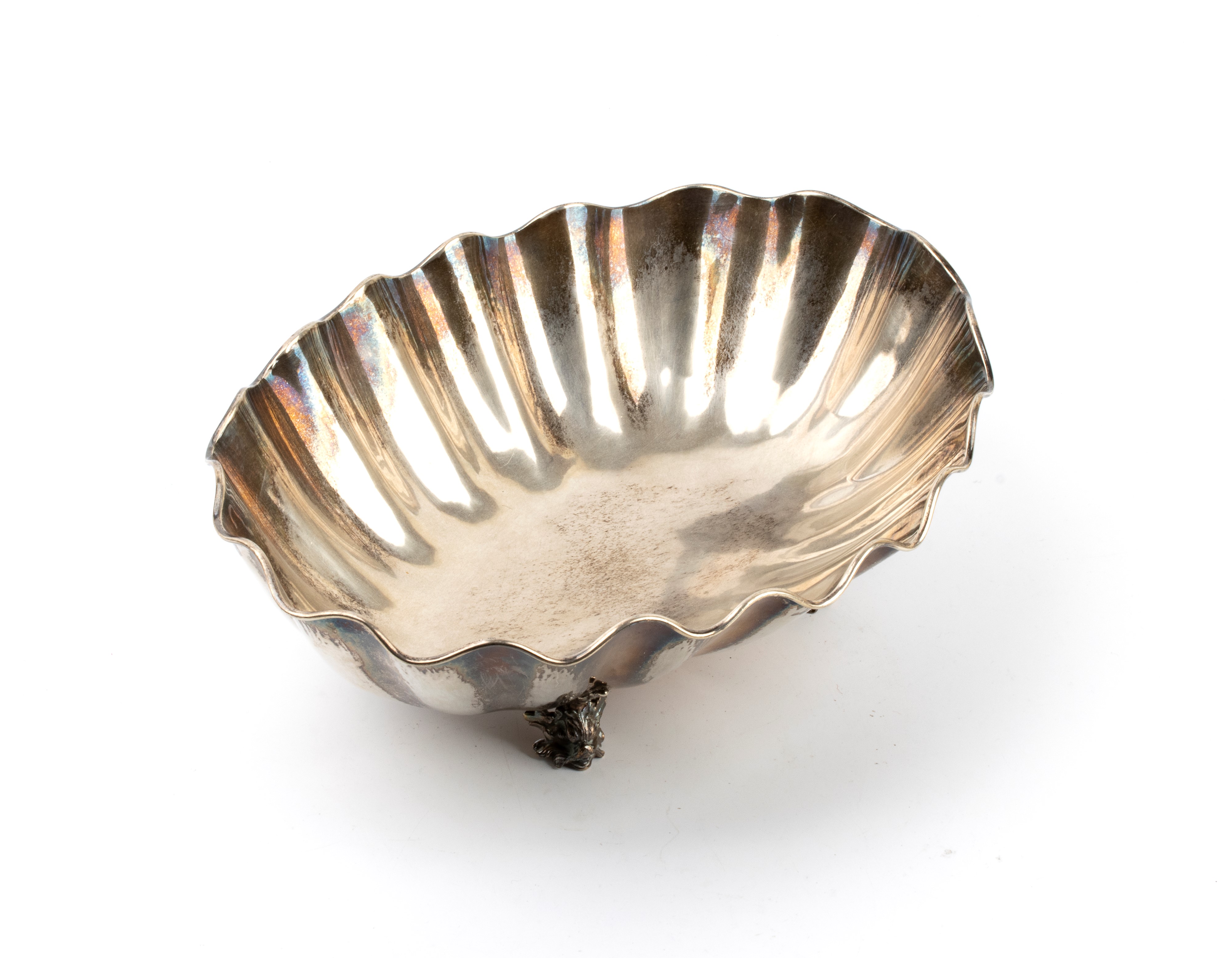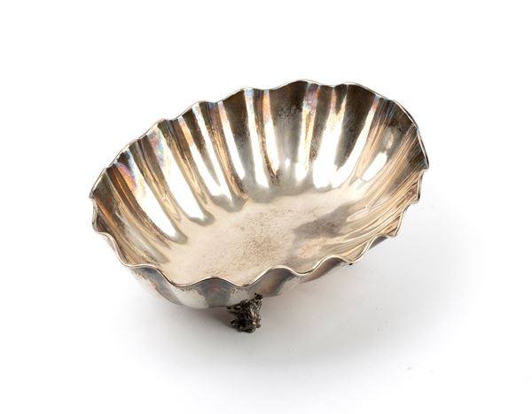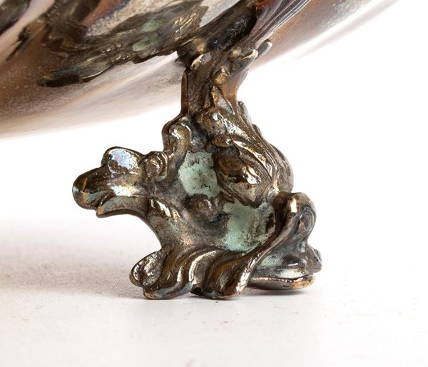 di forma ovale mossa, poggiante su quattro piedini fusti a forma di testa di delfino.