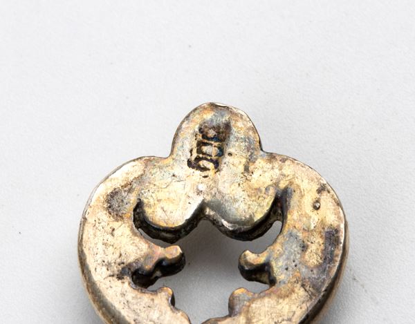 Montatura in argento: la ghiera superiore è finemente lavorata con motivi fogliati (o a volute), arricchita da 12 portacucciaini laterali.