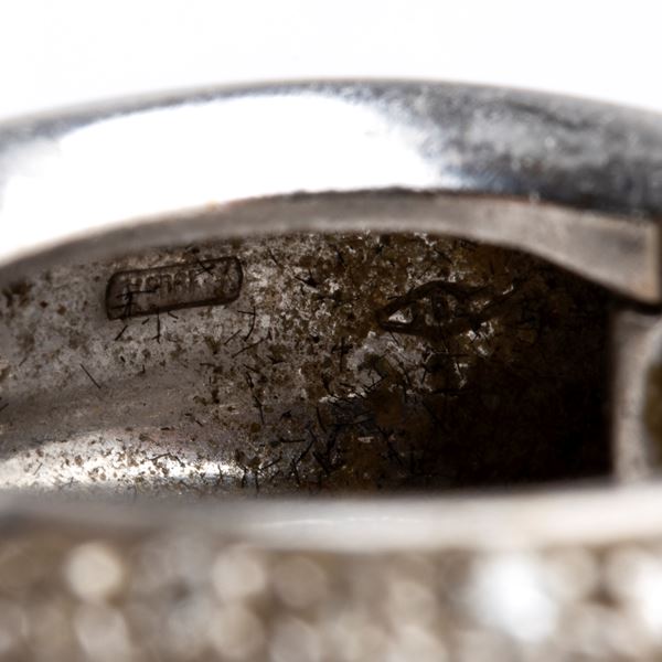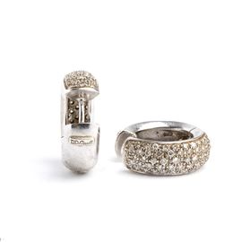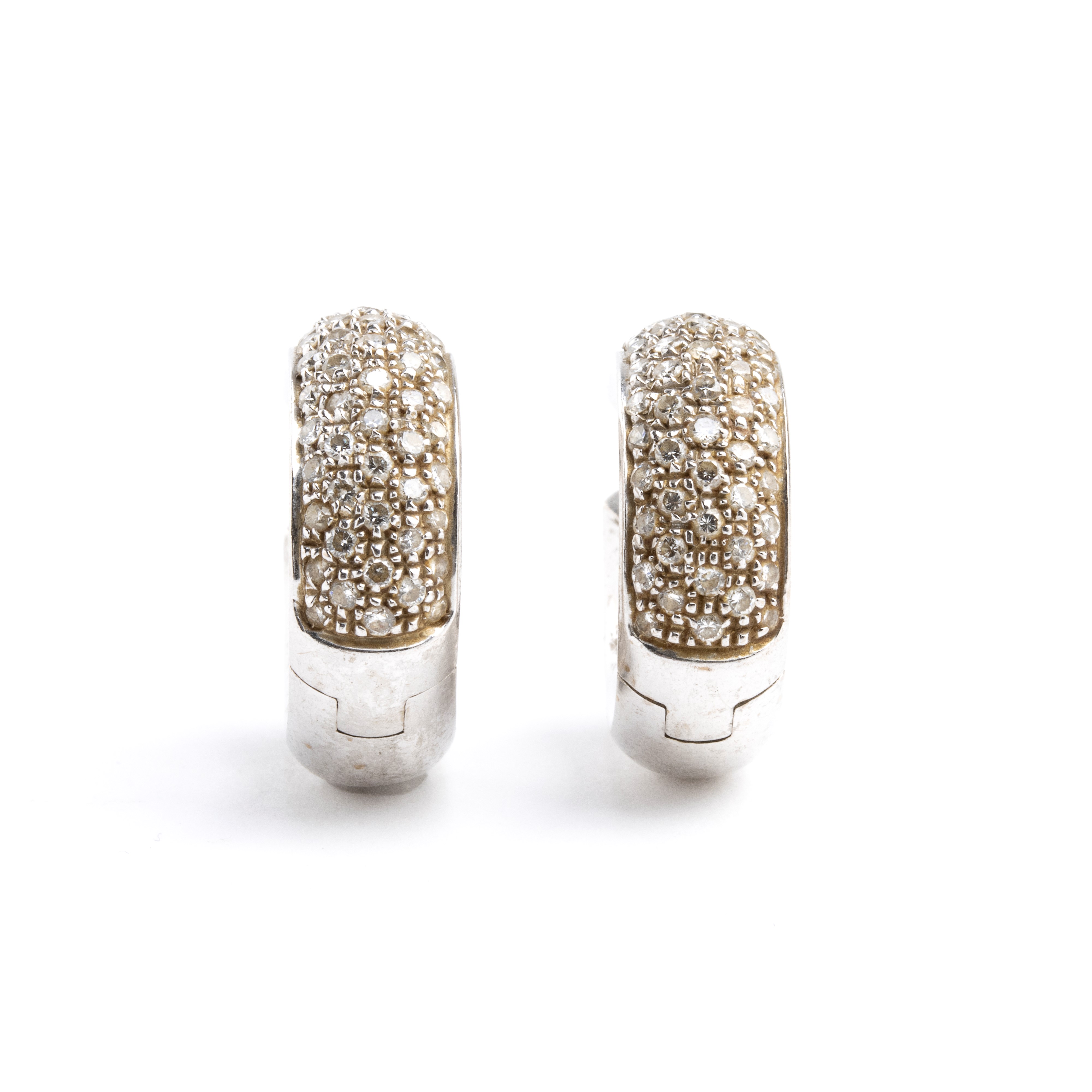 in oro bianco 18k, incastonati con pavè di diamanti stimati per un peso totale di circa 1.20 ct, colore G- H, purezza VVS-VS, come misurati con. Firmati DD GIOIELLI.