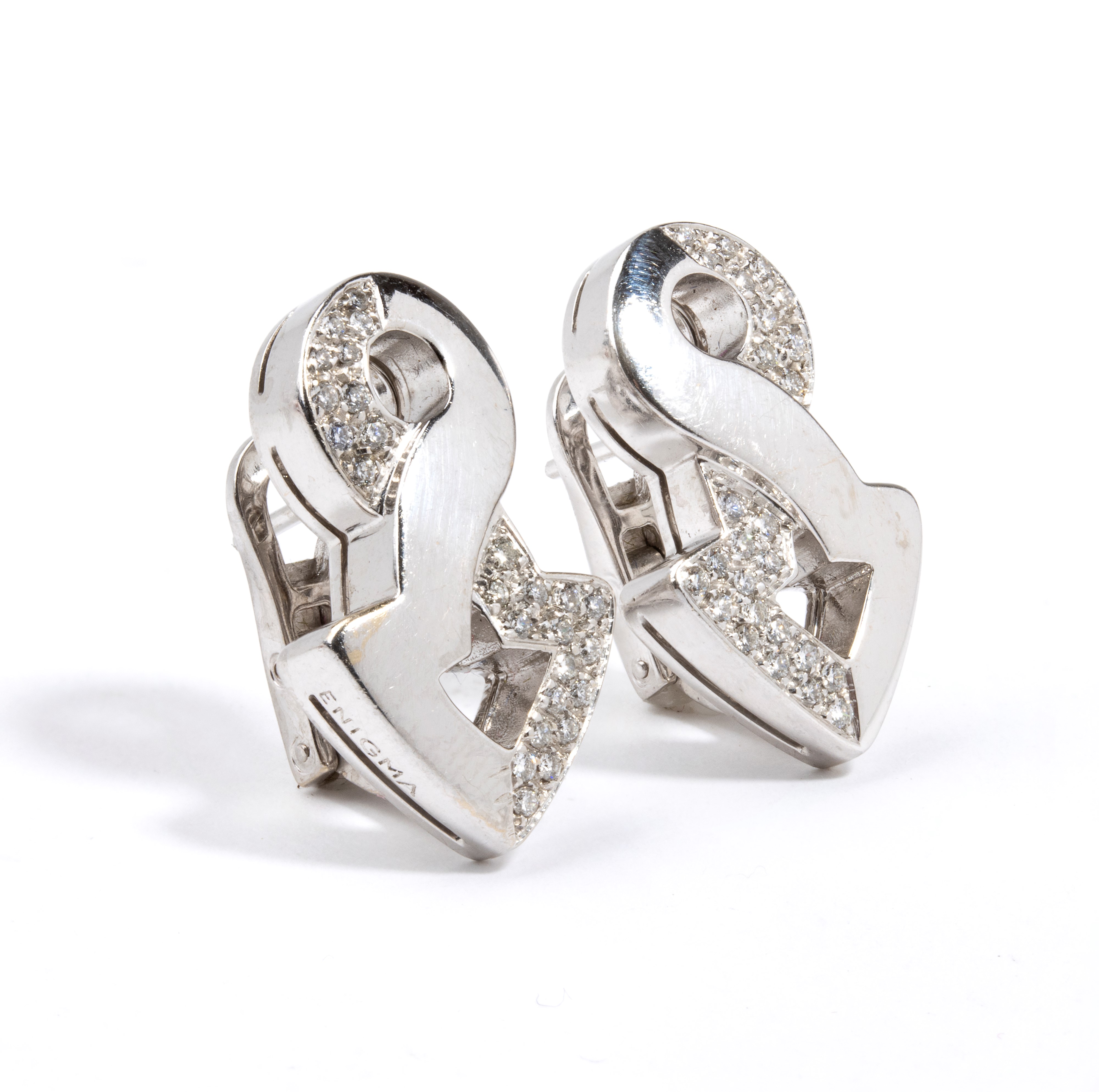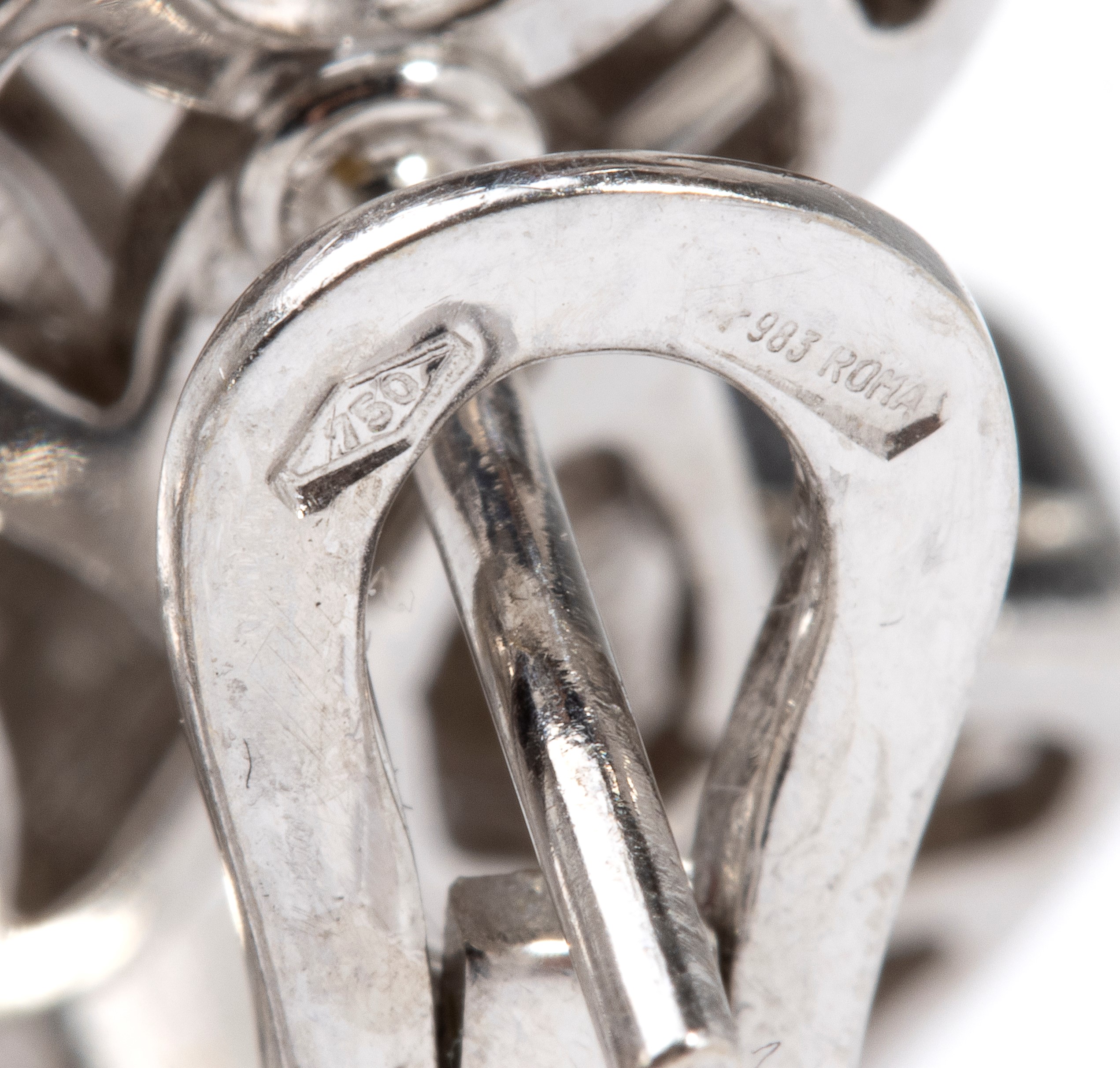 Punzonati "ENIGMA - 750 - 983 ROMA”. Dimensioni: 2,5 x 1,2 cm. Peso: 14.1 gr.
