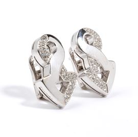 in oro bianco 18k, incastonati con pavé di diamanti di forma rotonda, taglio brillante, stimati per un peso totale di circa 0.60 ct, colore F-G, purezza VVS, come misurati e classificati nella montatura.