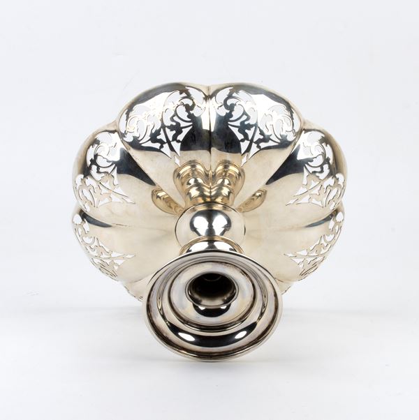 di forma sagomata poggiante su piede circolare e corpo traforato.
