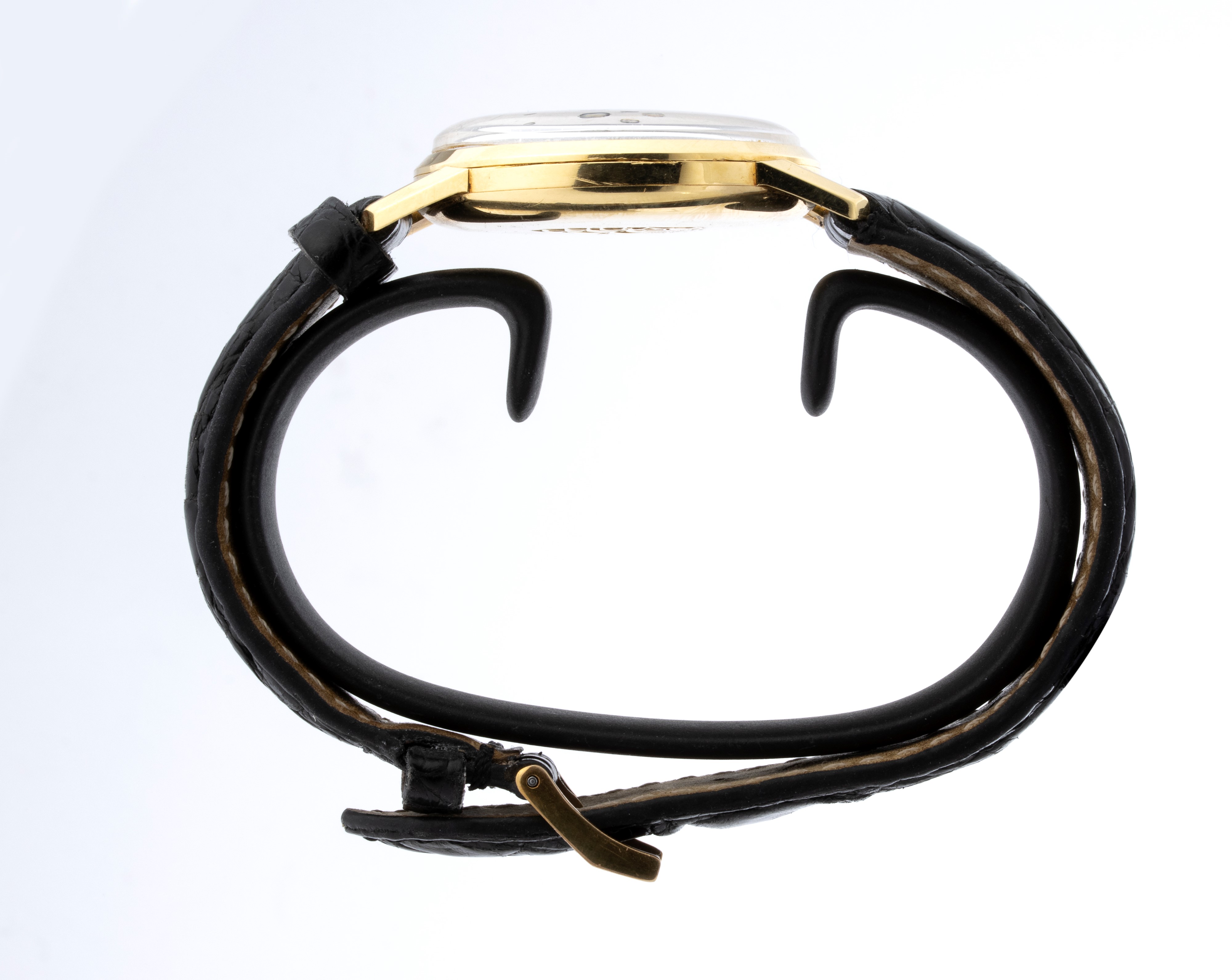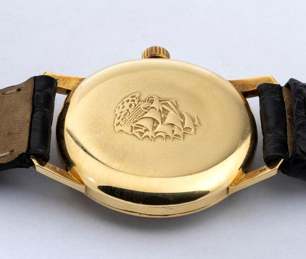Cassa in oro con fondello a scatto, quadrante bianco con datario ore 12. Movimento meccanico a carica automatica cal. 341.