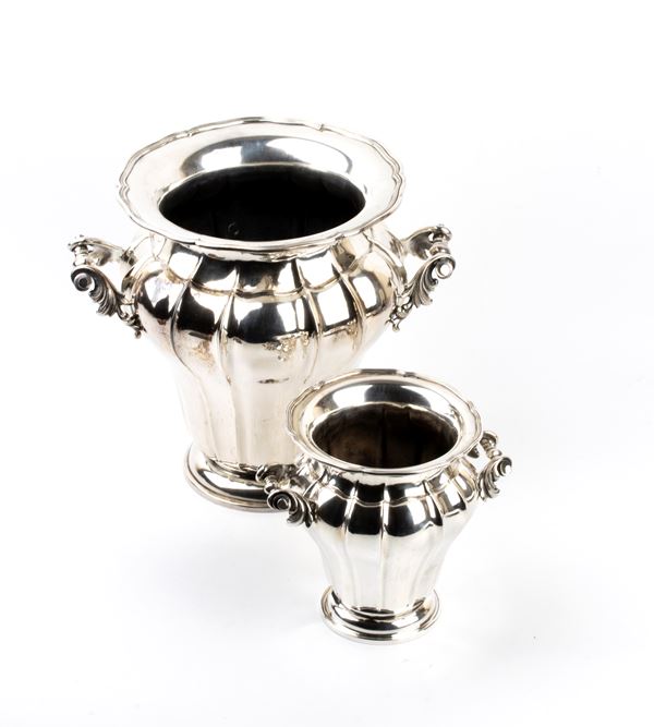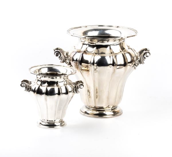 Lotto di due vasi italiani in argento, Metà XX secolo