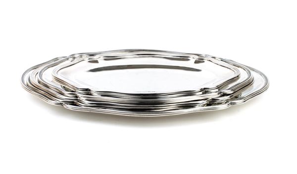 Lotto di otto vassoi italiani in argento, Metà XX secolo