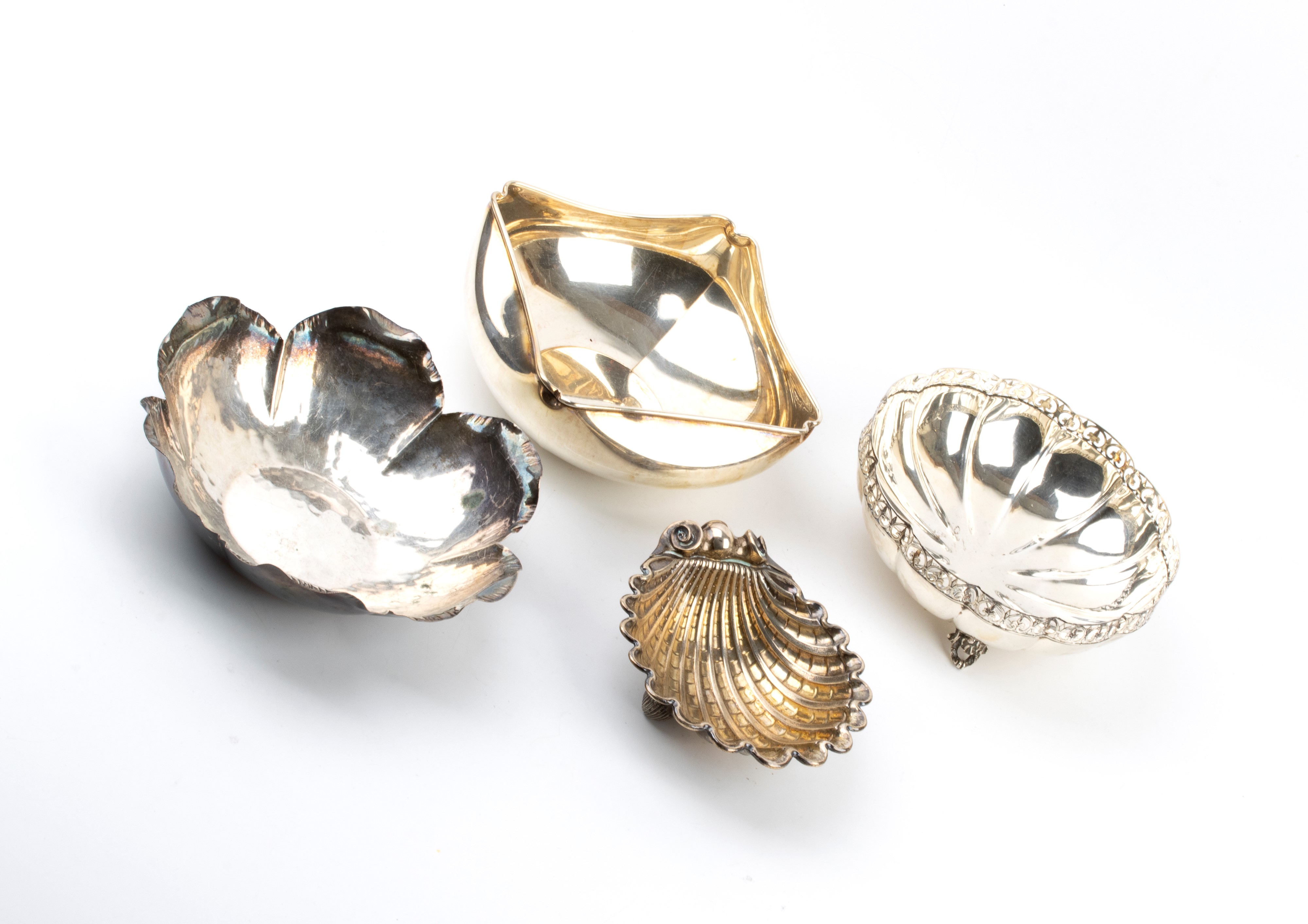 Lotto di quattro cestini in argento, XX secolo