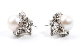 Punzonato "750". Diametro perle 14 - 14.5 mm. Dimensioni: 2.5 x 2.5 cm. Peso: 25 gr.